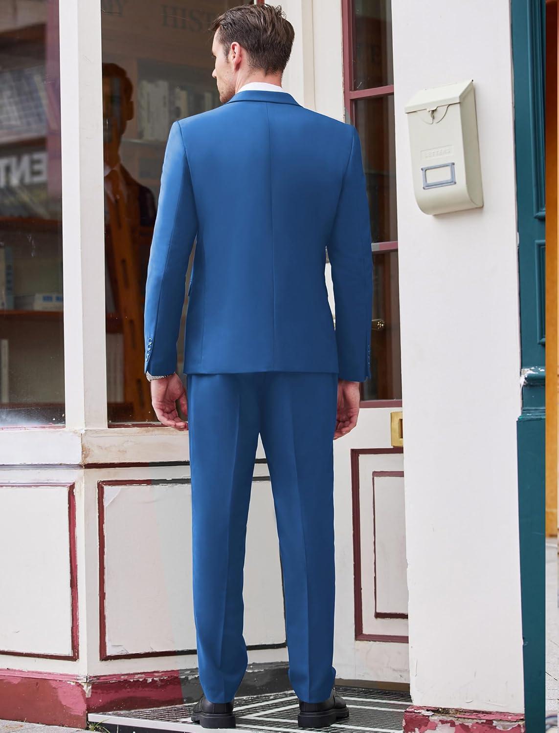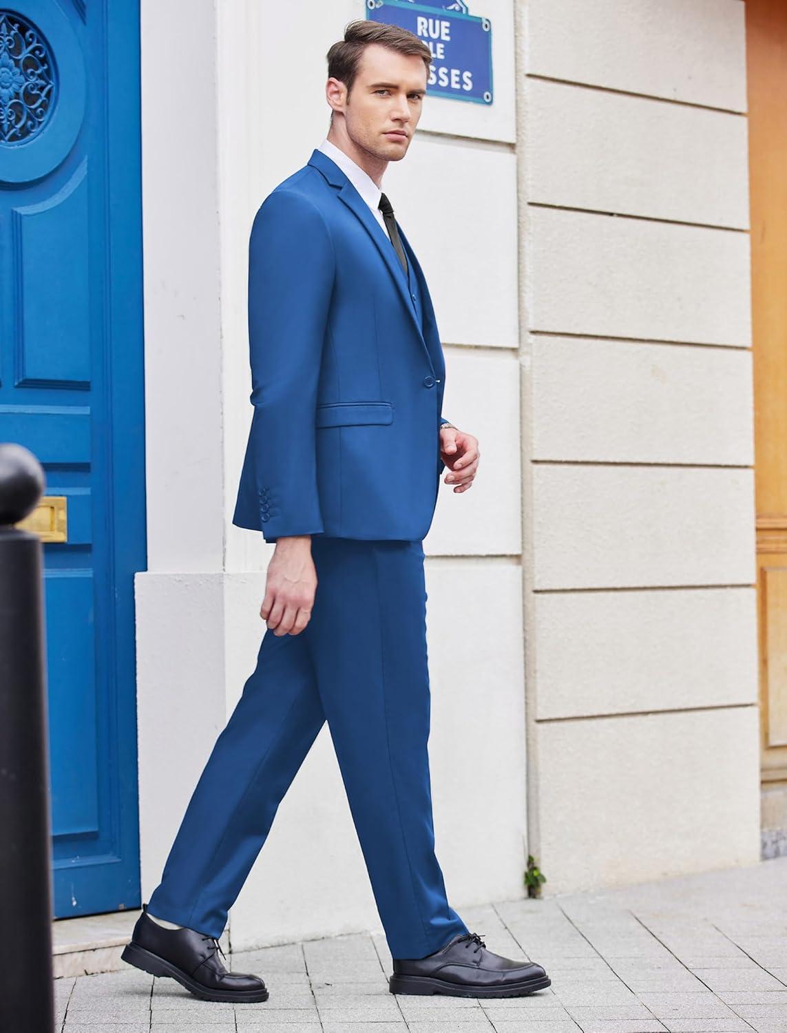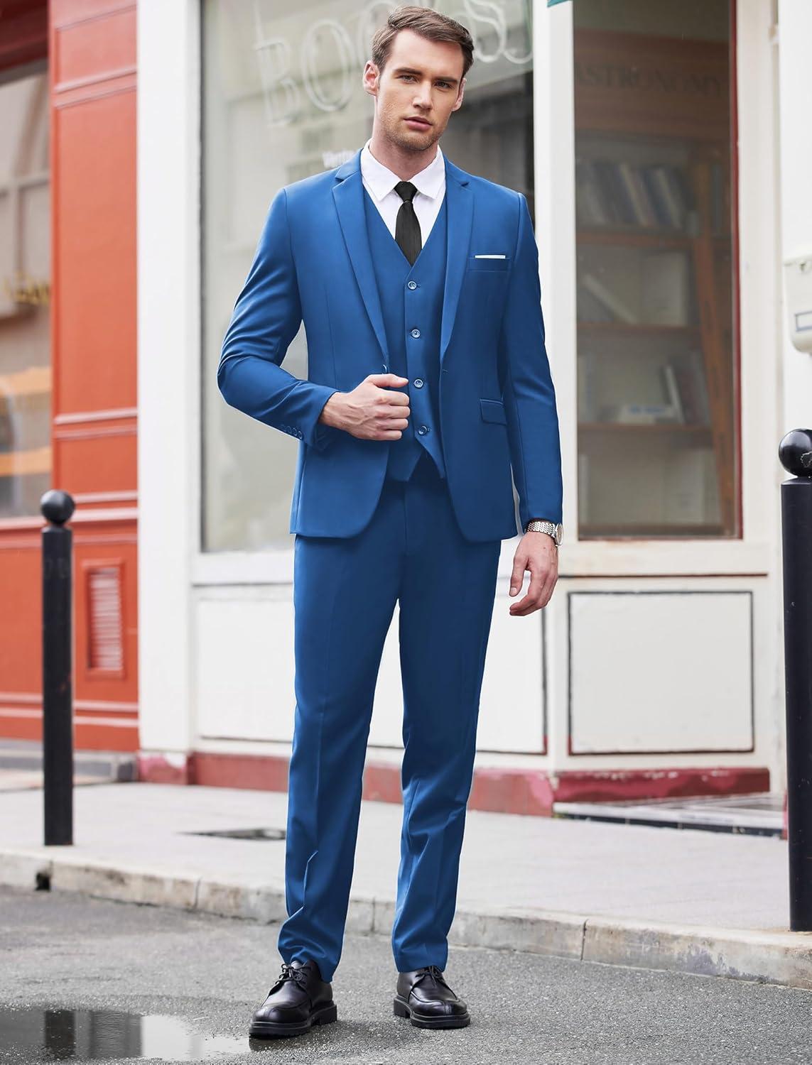 COOFANDY Men's 3 Piece Wedding Suit Set One Button Slim Fit Jacket Blazer Vest Pants Set Groom Prom Tuxedo Suits(Blue)