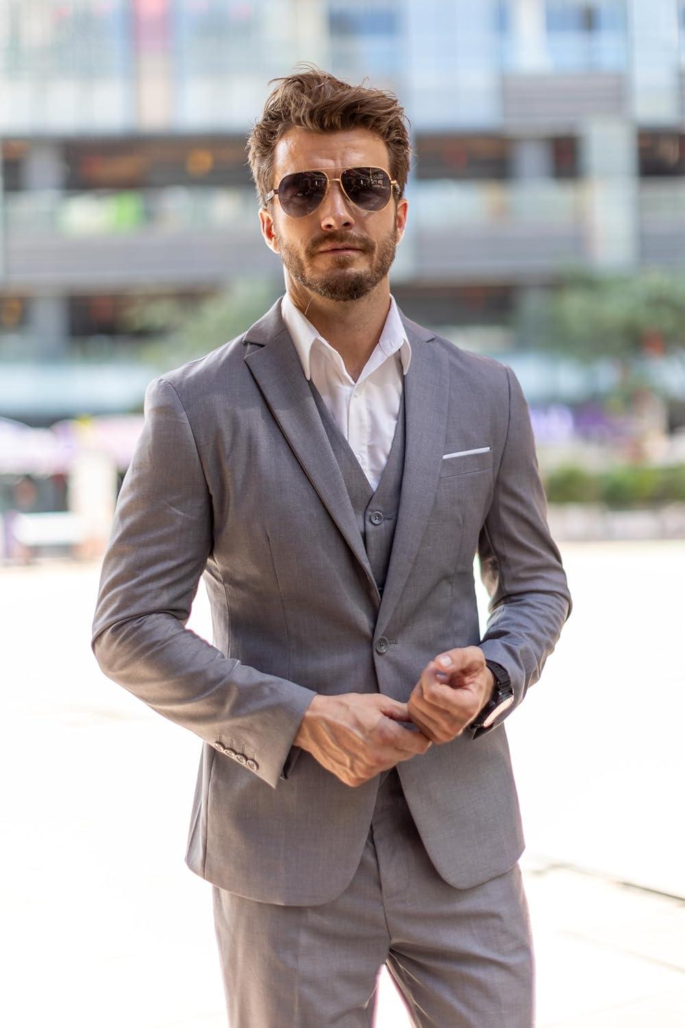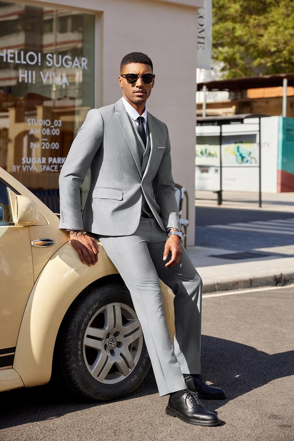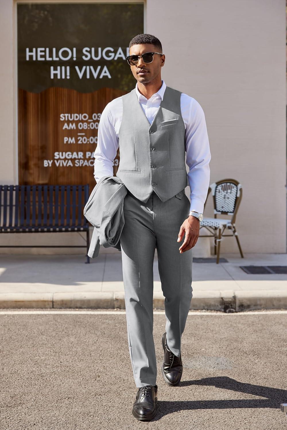 COOFANDY Men's 3 Pieces Suit Classic One Button Single Breasted Slim Fit Blazer Jacket Vest Pants Set Wedding Busines(Light Heather Grey)