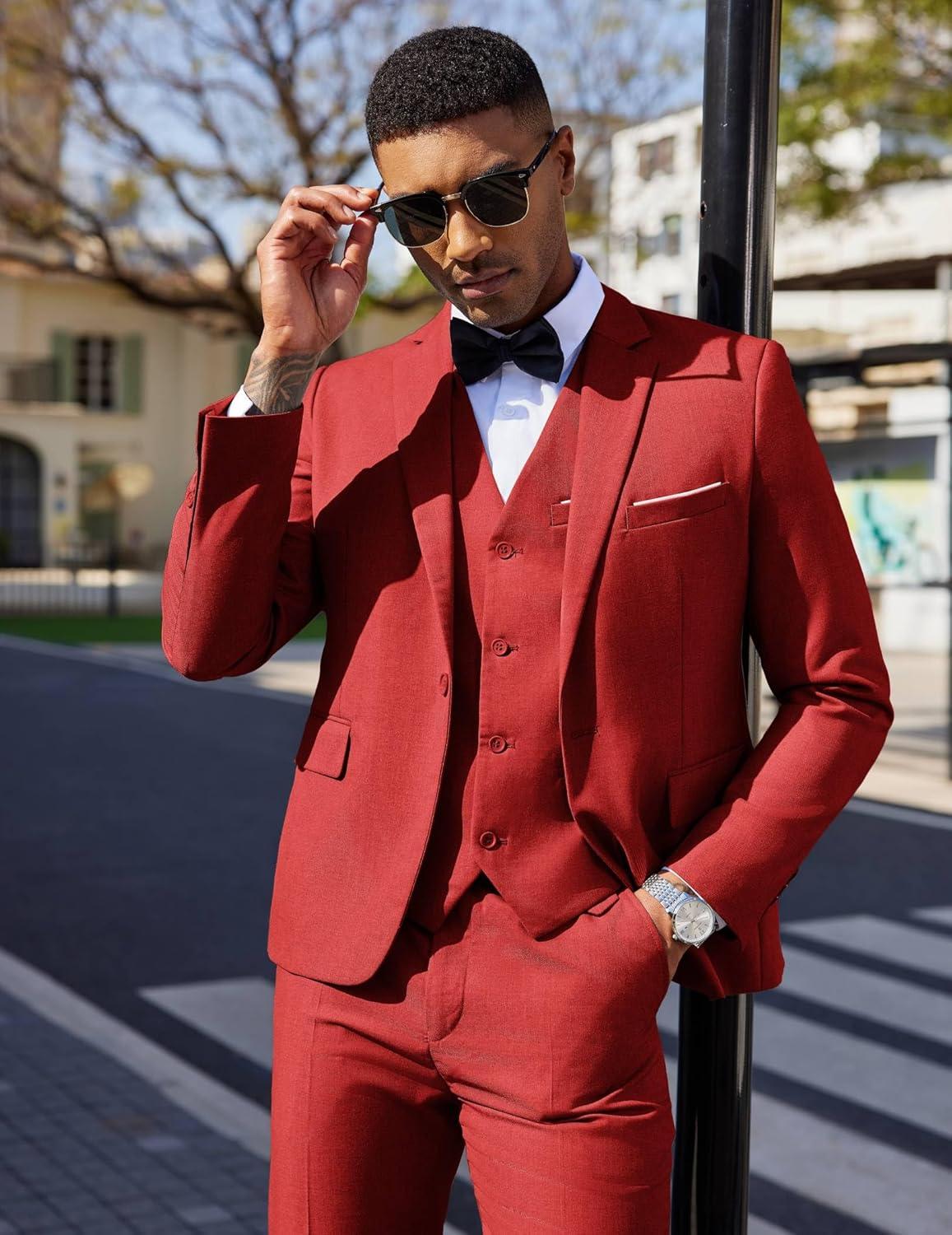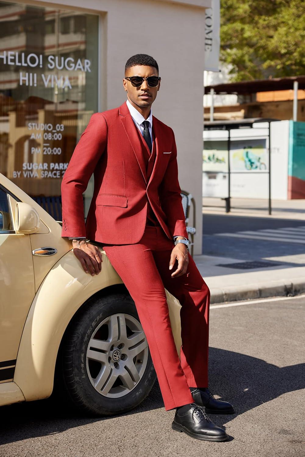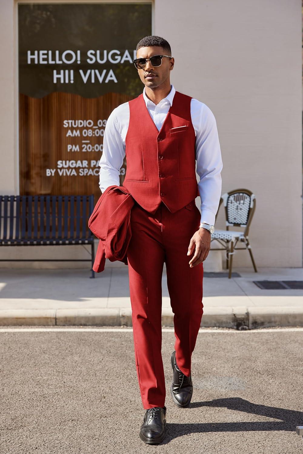 Don’t miss out on our limited-time offer: buy COOFANDY Men’s 3 Pieces Suit Classic One Button Single Breasted Slim Fit Blazer Jacket Vest Pants Set Wedding Busines(Red), get {accessory} 50% off!