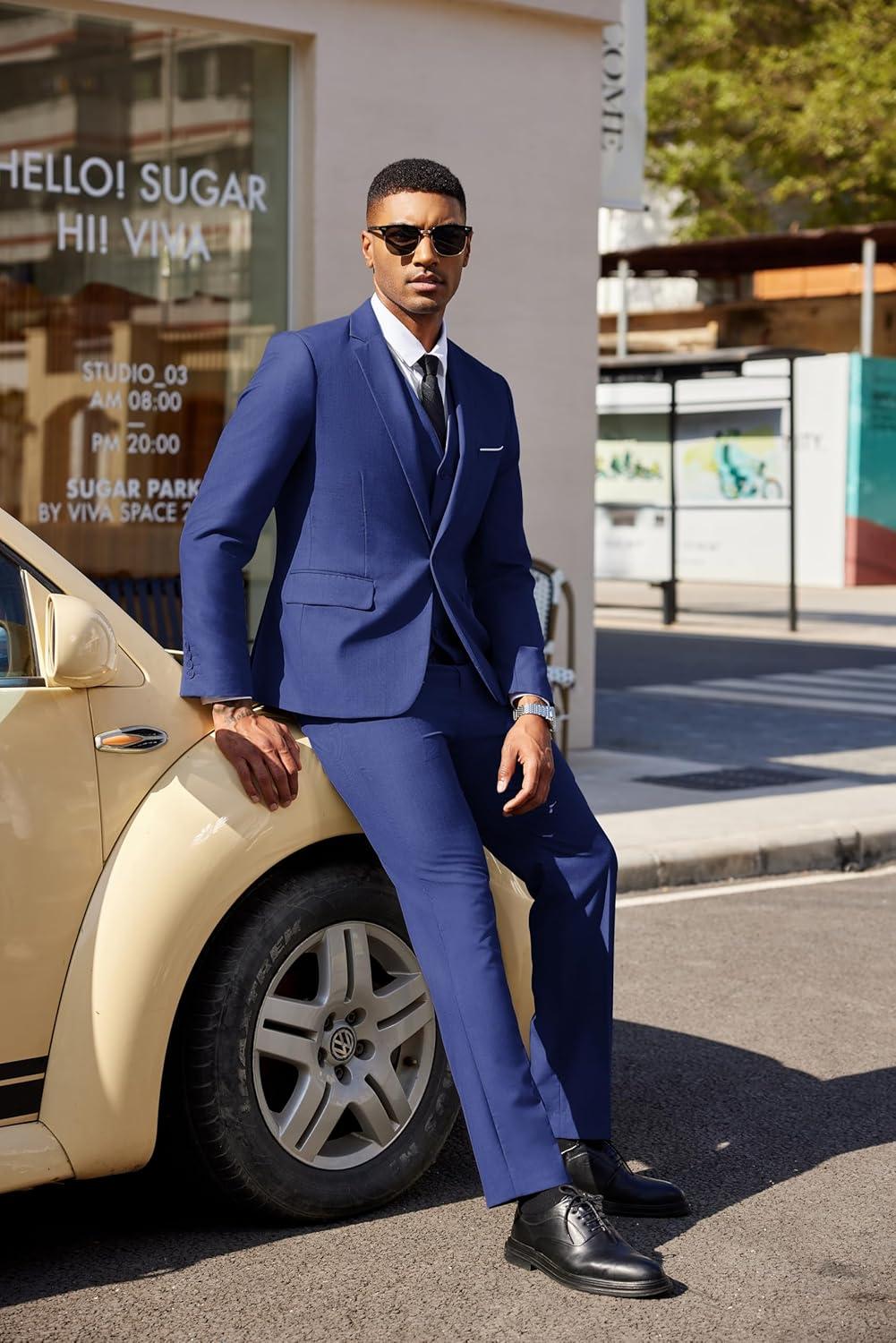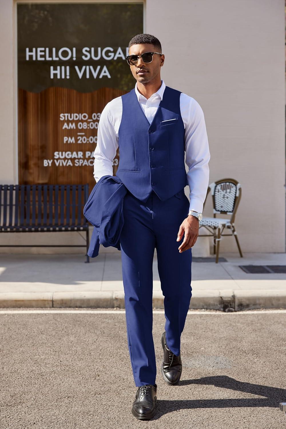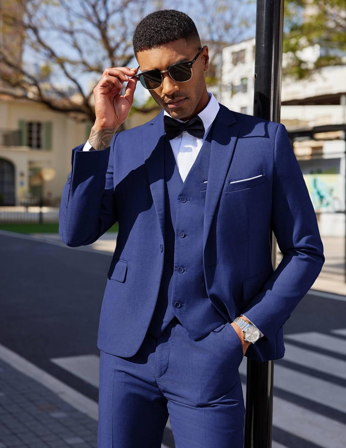 COOFANDY Men’s 3 Pieces Suit Classic One Button Single Breasted Slim Fit Blazer Jacket Vest Pants Set Wedding Busines(Navy Blue)