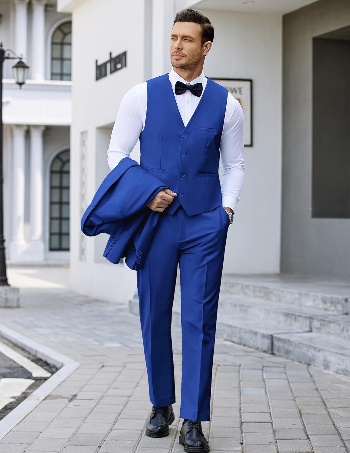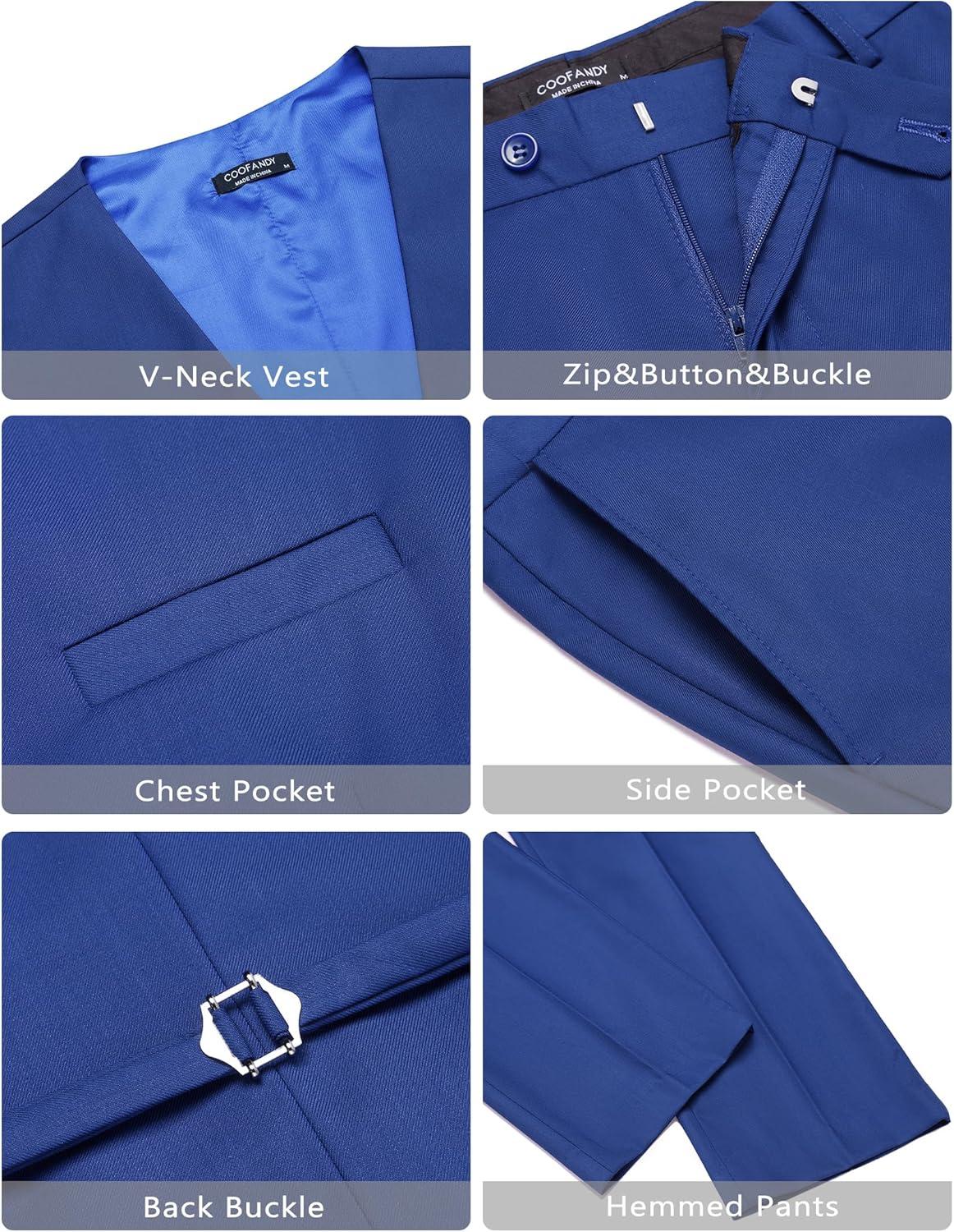 COOFANDY Men's 3 Piece Suit One Button Slim Fit Formal Wedding Prom Tuxedo Suits Blazer Vest Pants Set