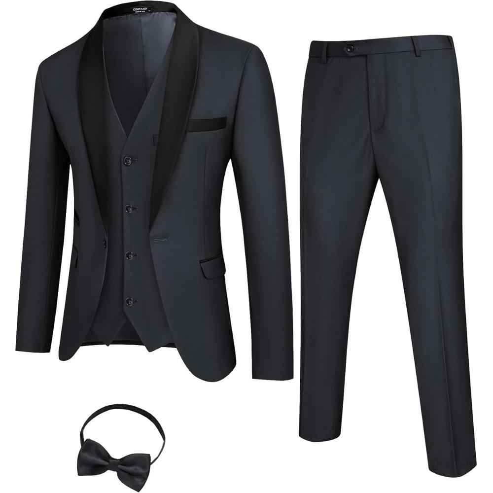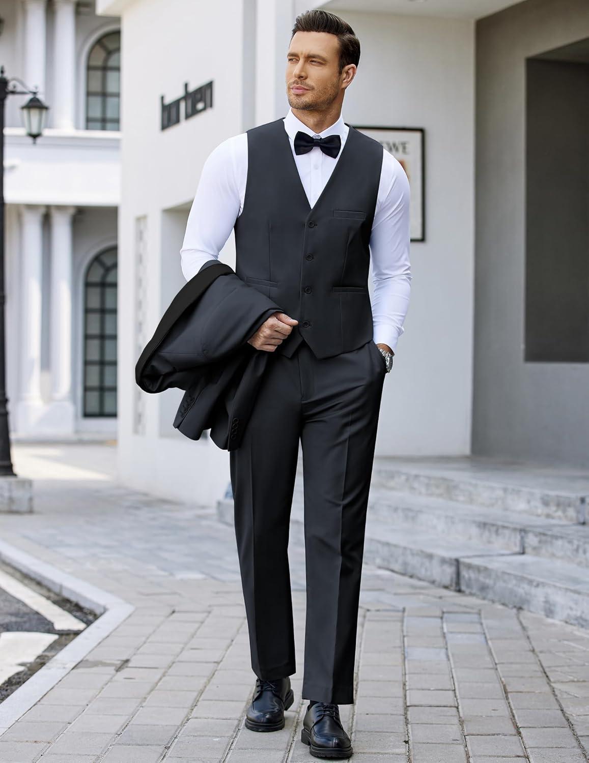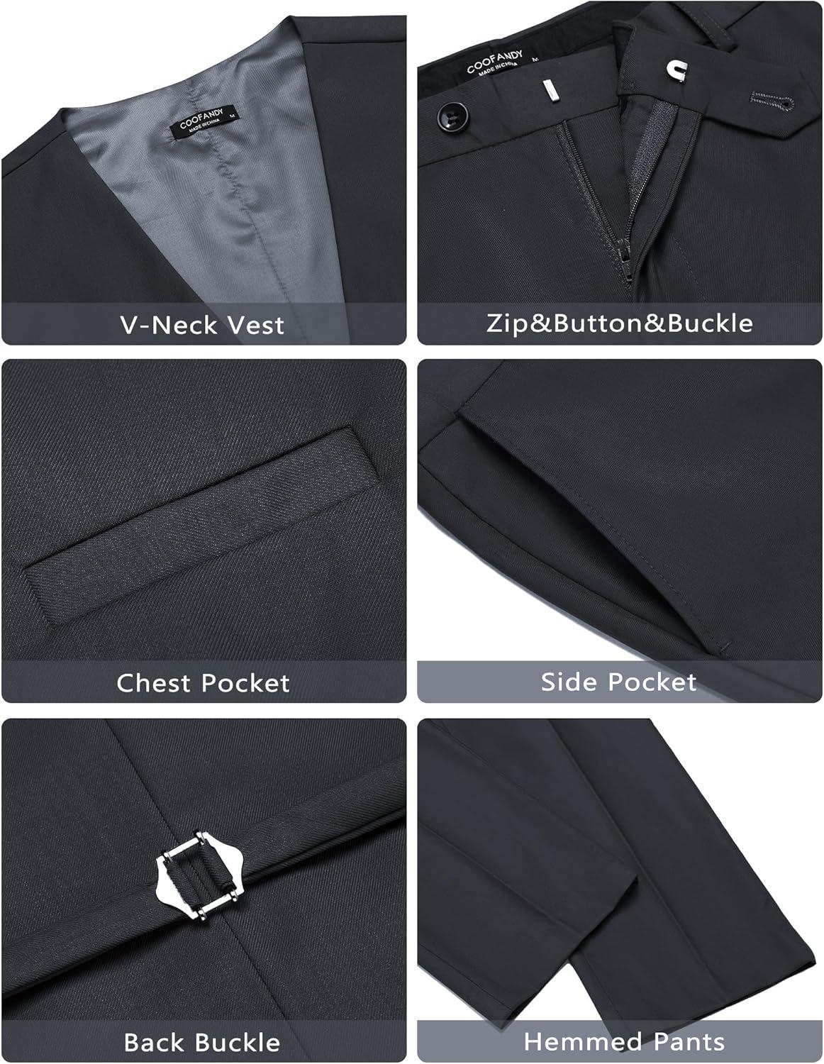 COOFANDY Men's 3 Piece Suit One Button Slim Fit Formal Wedding Prom Tuxedo Suits Blazer Vest Pants Set