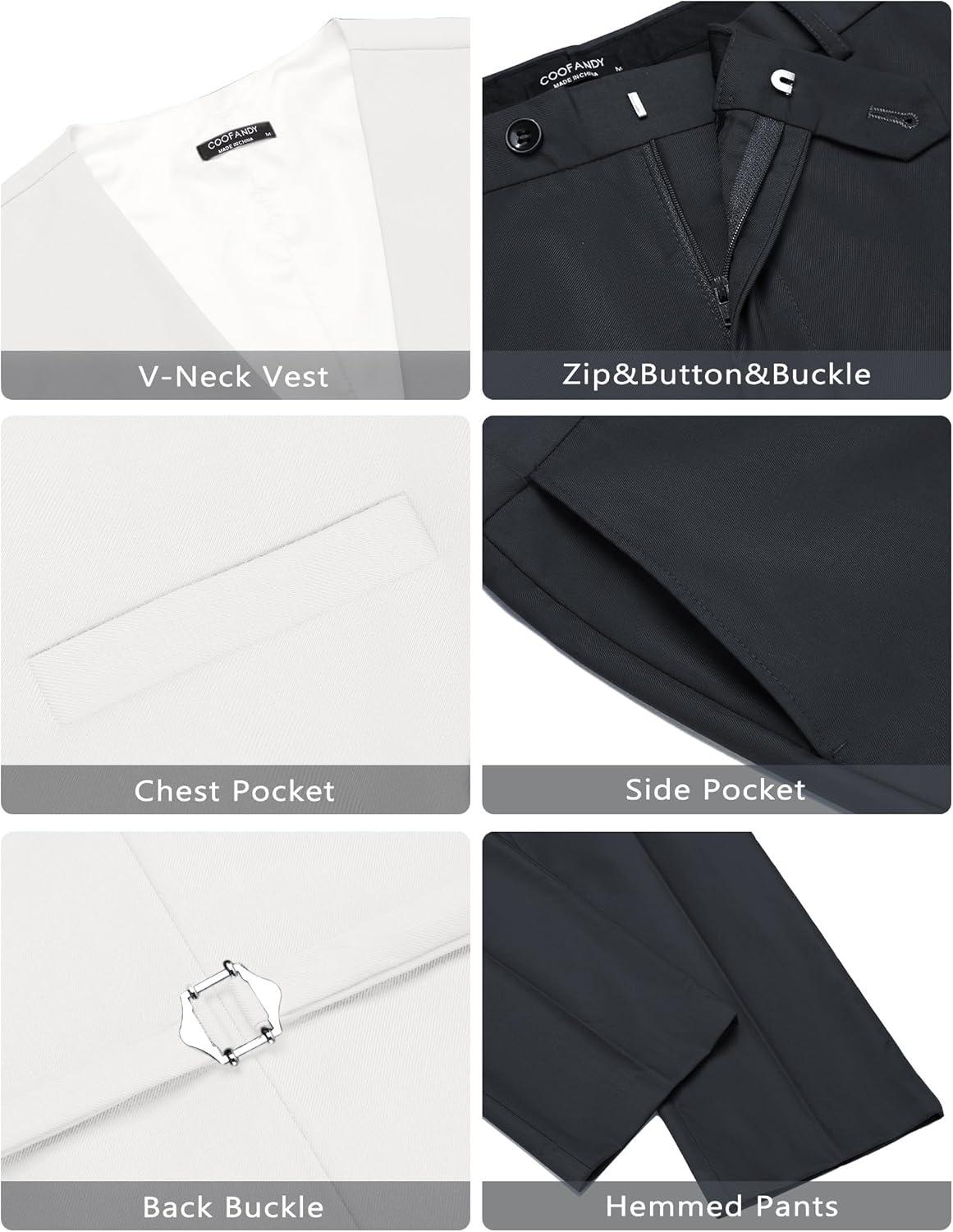 COOFANDY Men's 3 Piece Suit One Button Slim Fit Formal Wedding Prom Tuxedo Suits Blazer Vest Pants Set