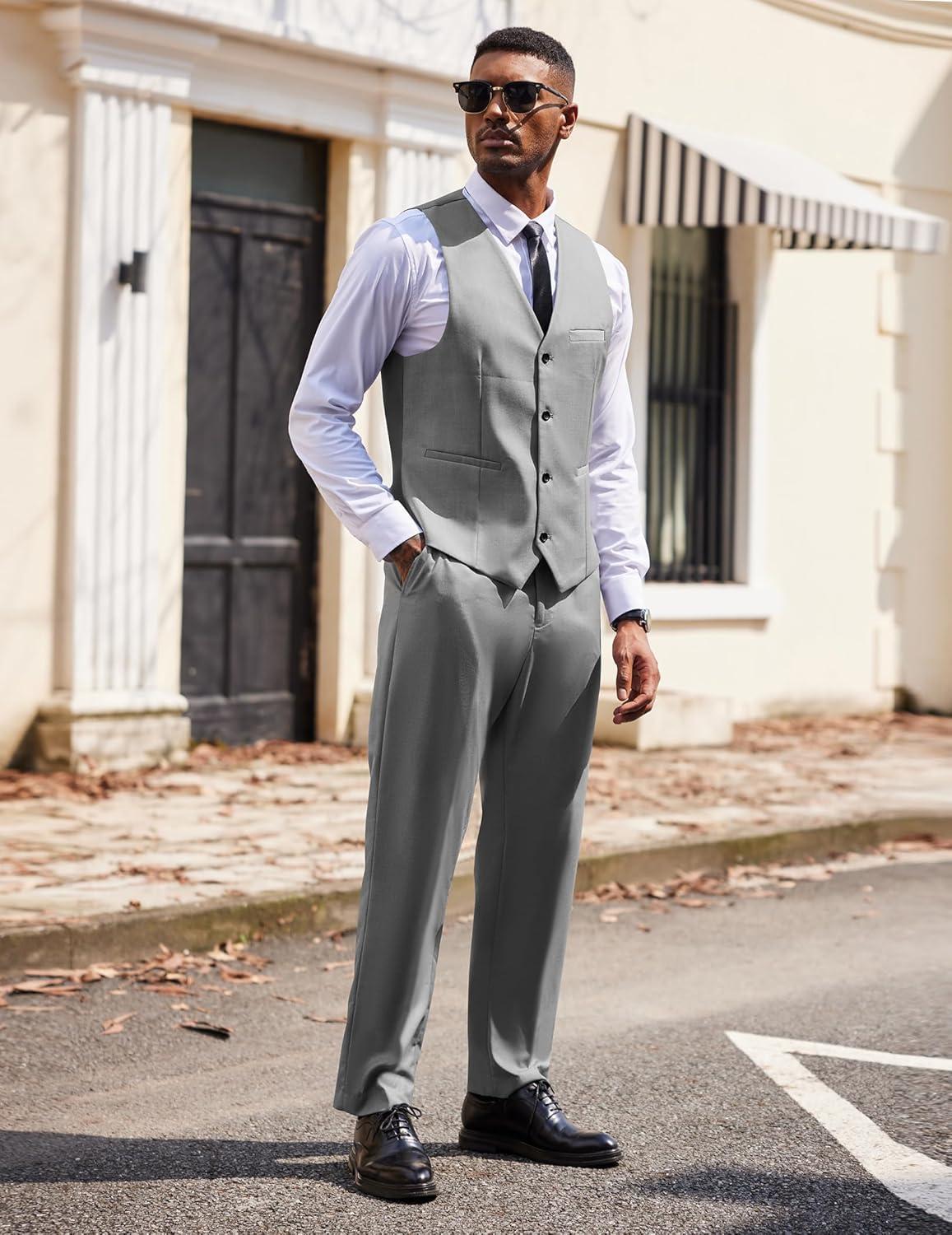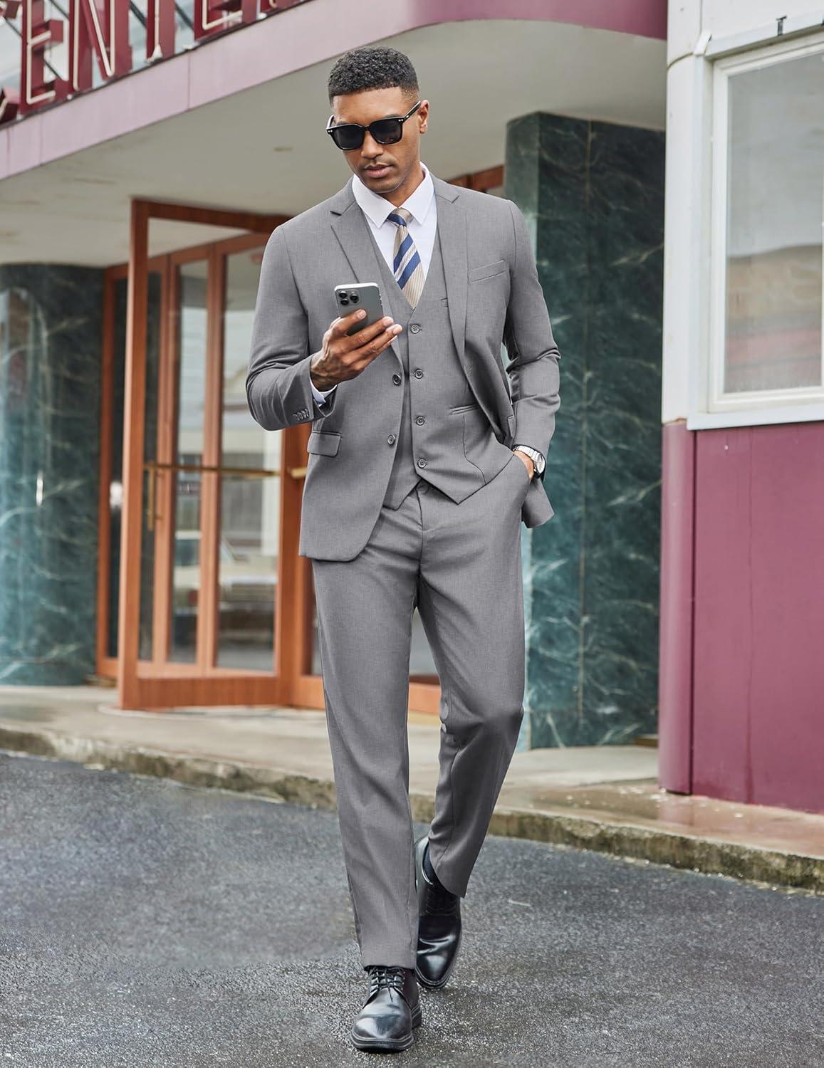 COOFANDY Men's 3 Pieces Suits Classic Fit 2 Buttons Dress Suit Set Wedding Business Dinner Prom Jacket Vest Pants(Light Grey)