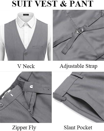 COOFANDY Men’s 3 Pieces Suits Classic Fit 2 Buttons Dress Suit Set Wedding Business Dinner Prom Jacket Vest Pants(Light Grey)