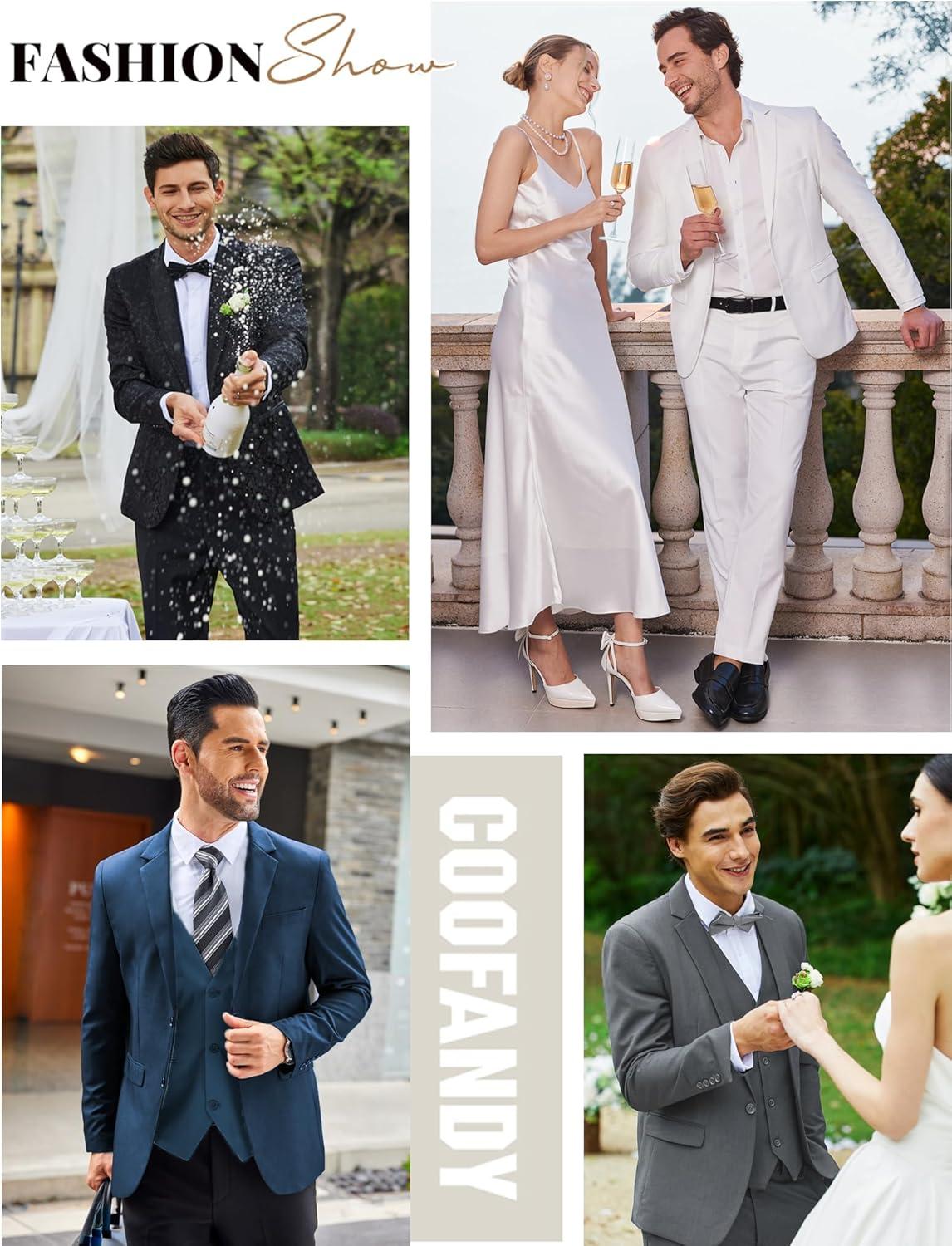imageCOOFANDY Mens 3 Pieces Suits Classic Fit 2 Buttons Dress Suit Set Wedding Business Dinner Prom Jacket Vest PantsWhite