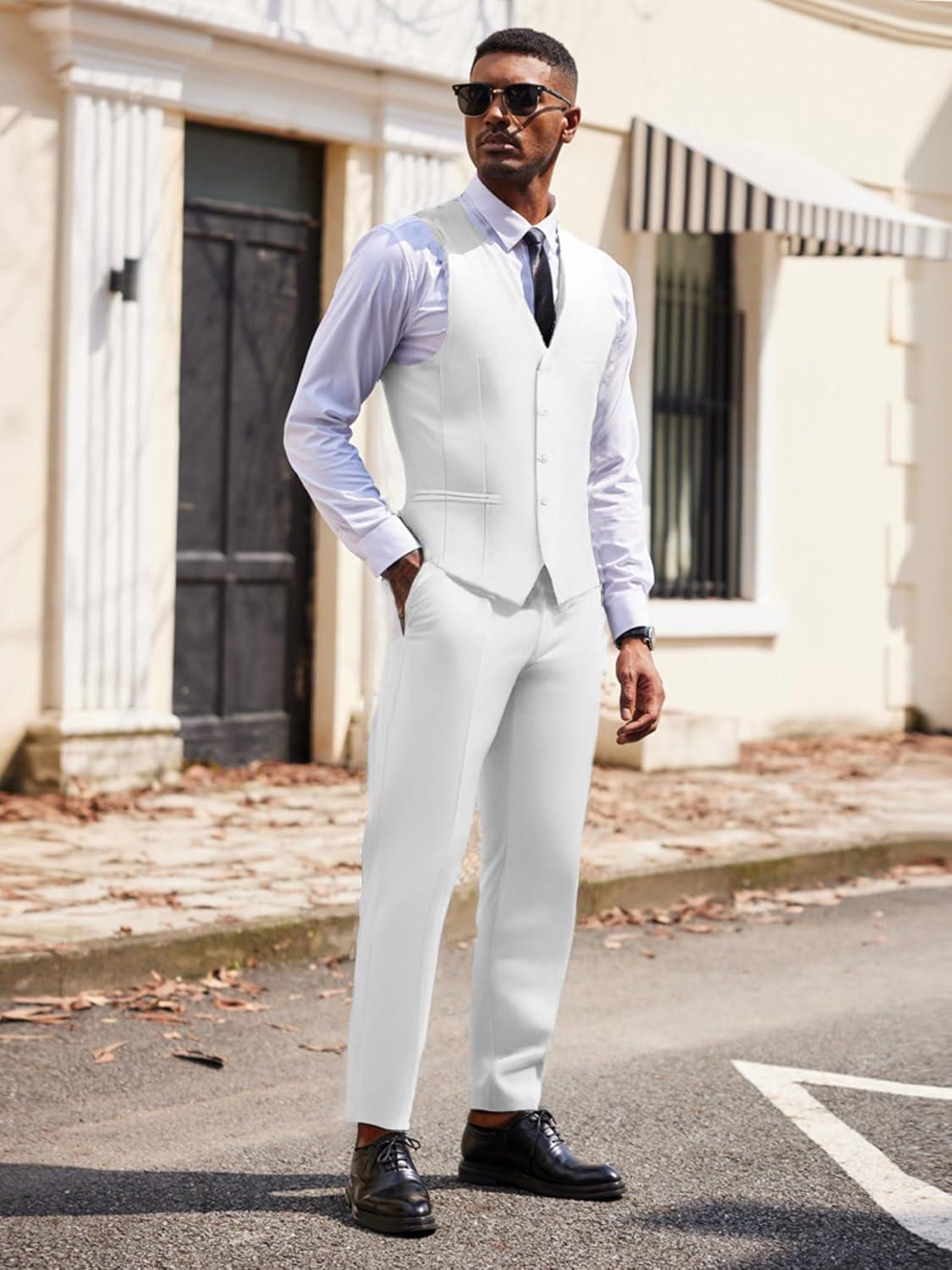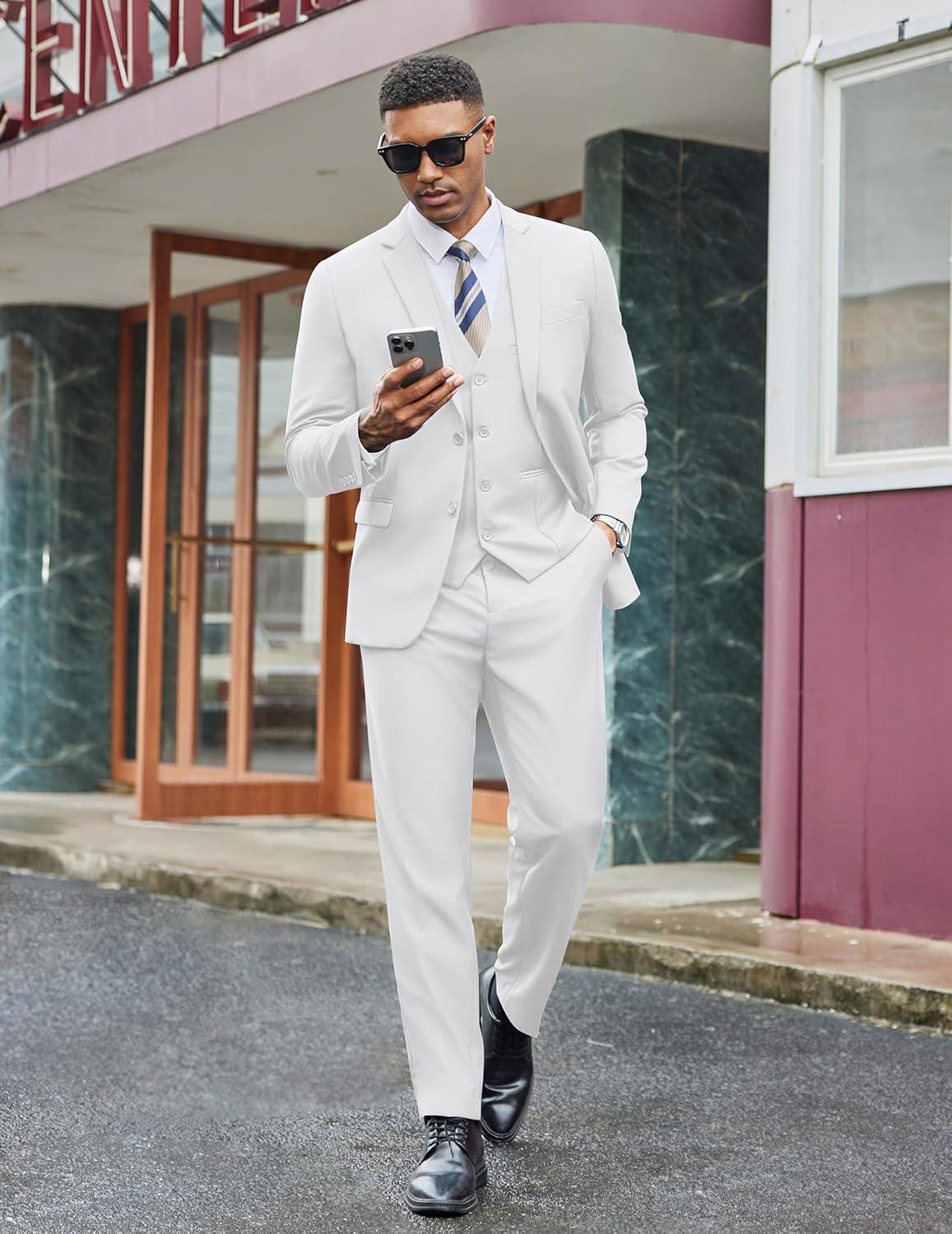 COOFANDY Men's 3 Pieces Suits Classic Fit 2 Buttons Dress Suit Set Wedding Business Dinner Prom Jacket Vest Pants(White)