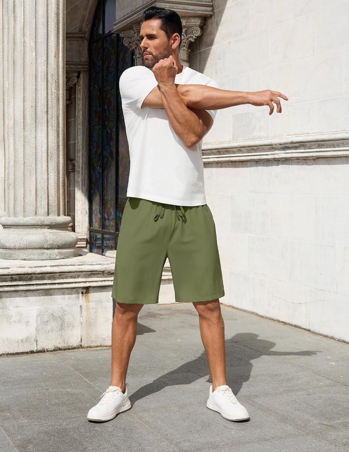 COOFANDY Men's 7 inch Casual Shorts Drawstring Waist Lightweight Quick Dry Summer Beach Board Shorts with Pockets(Army Green)