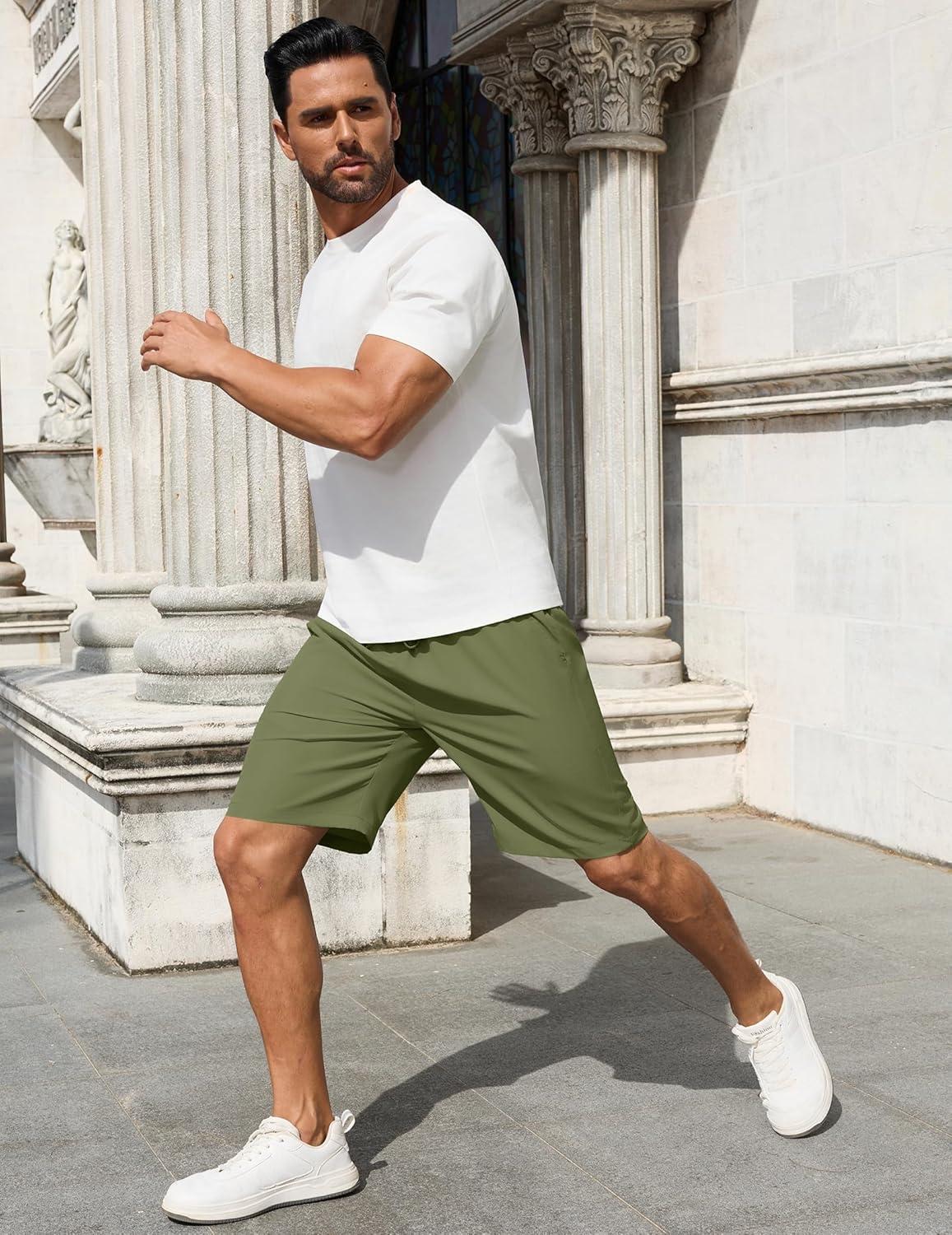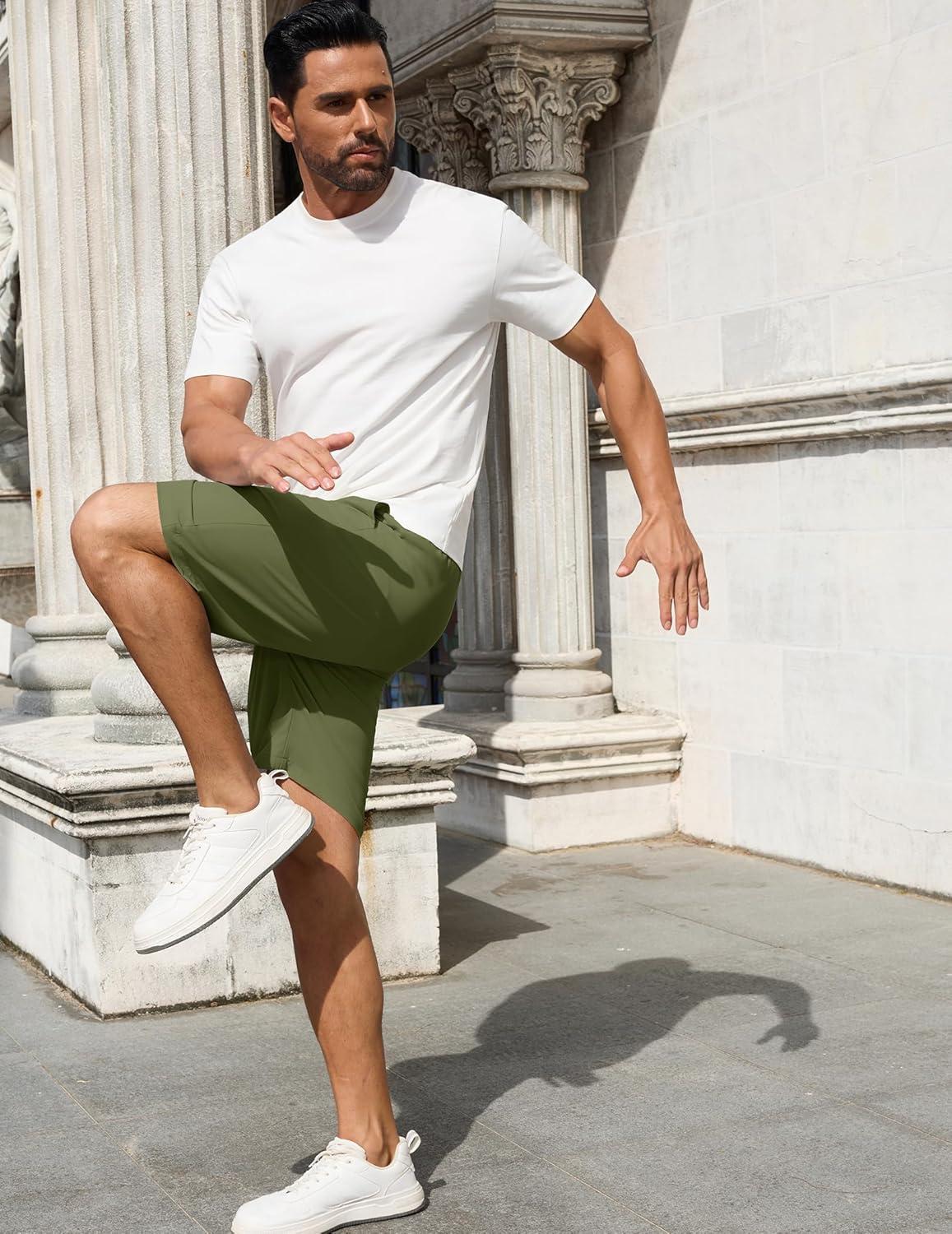 COOFANDY Men’s 7 inch Casual Shorts Drawstring Waist Lightweight Quick Dry Summer Beach Board Shorts with Pockets(Army Green)