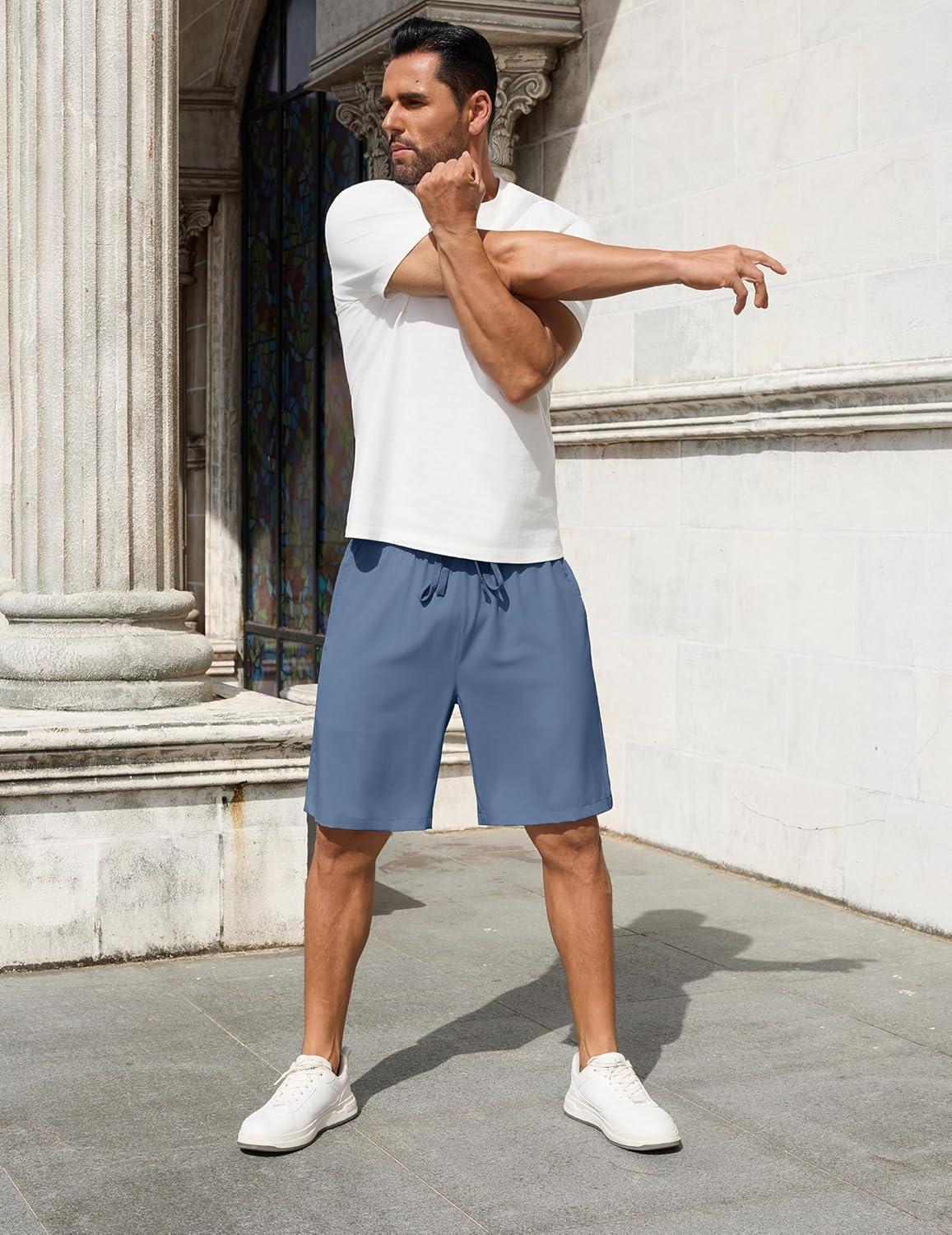COOFANDY Men's 7 inch Casual Shorts Drawstring Waist Lightweight Quick Dry Summer Beach Board Shorts with Pockets(Blue)