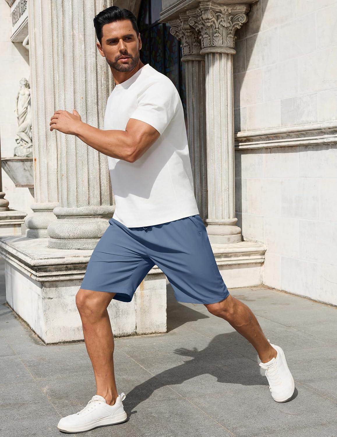 COOFANDY Men’s 7 inch Casual Shorts Drawstring Waist Lightweight Quick Dry Summer Beach Board Shorts with Pockets(Light Blue)