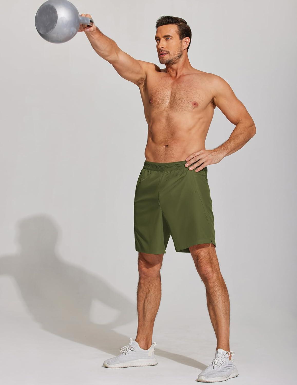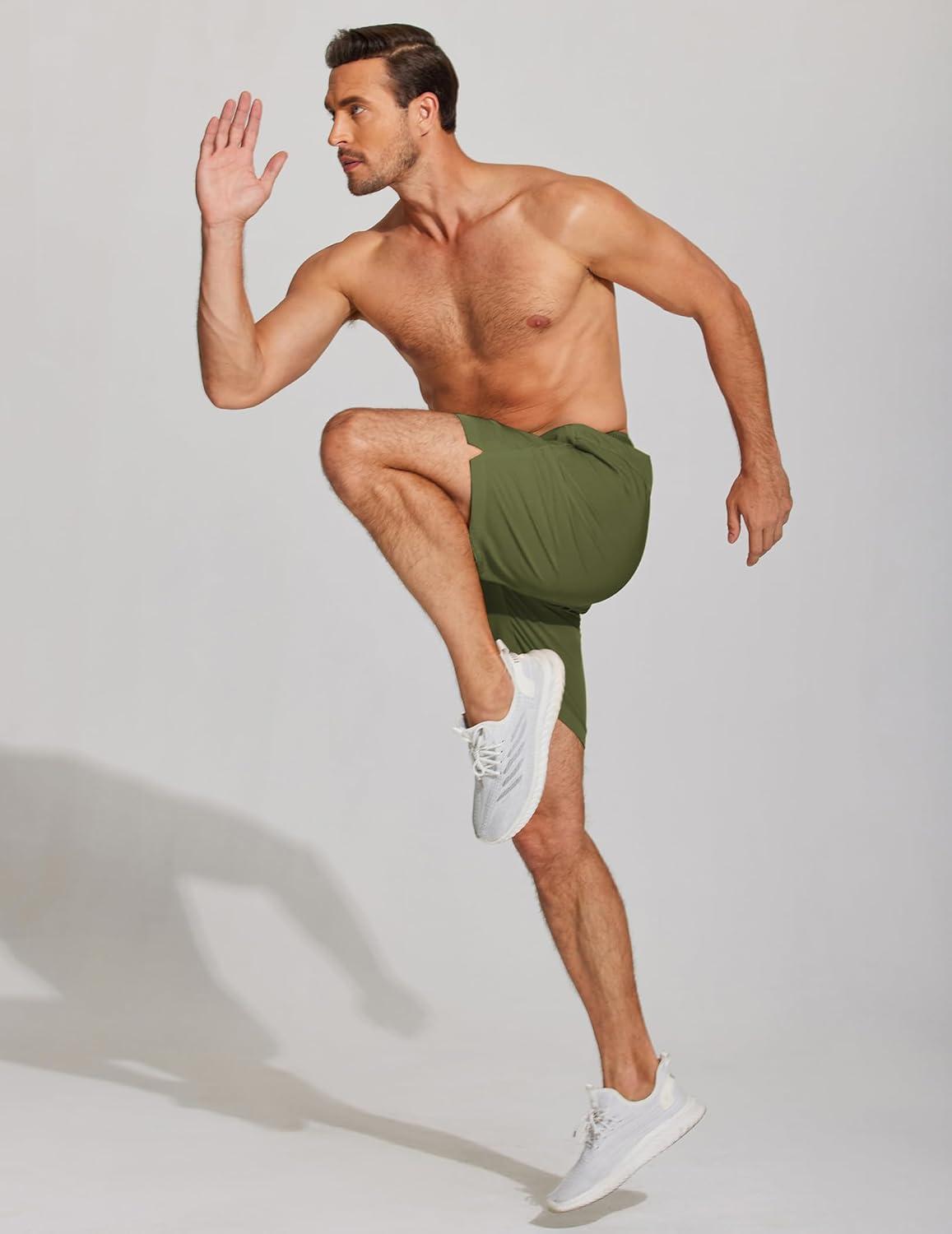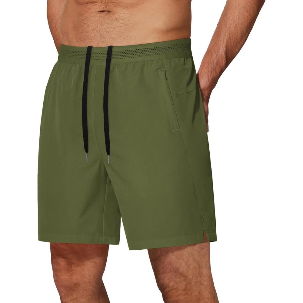 COOFANDY Mens Athletic Running Shorts 7” Gym Workout Shorts Lightweight Drawstring Training Shorts with Zipper Pockets(Army Green(1 Pack of 1))