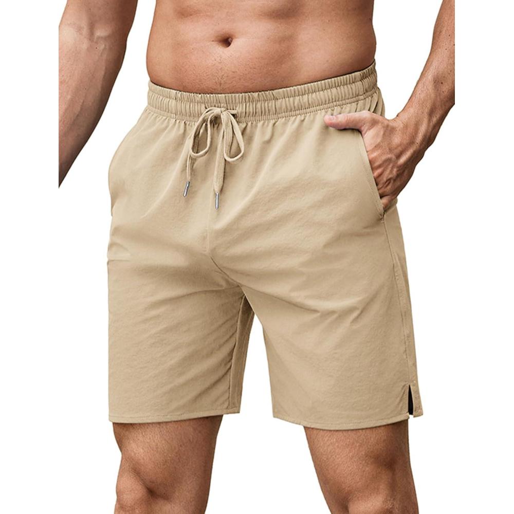 COOFANDY Men’s Athletic Running Shorts 7″ Quick Dry Lightweight Workout Gym Basketball Hiking Shorts with Pockets(Light Khaki)