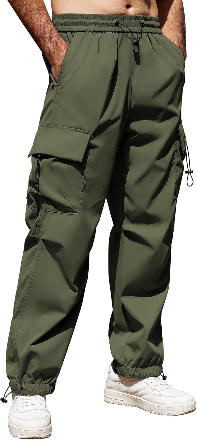 COOFANDY Men's Parachute Cargo Pants Loose Fit Y2K Pants Drawstring Casual Pants Beam Feet Trousers