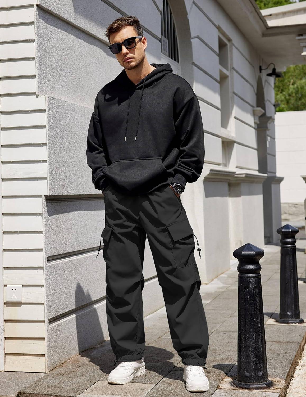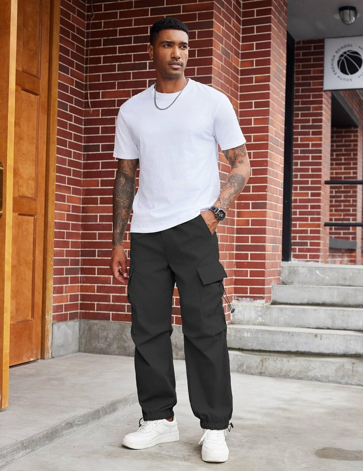 COOFANDY Men's Casual Cargo Pants Relaxed Loose Straight Fit Sweatpants Drawstring Athletic Hiking Jogger With Pockets