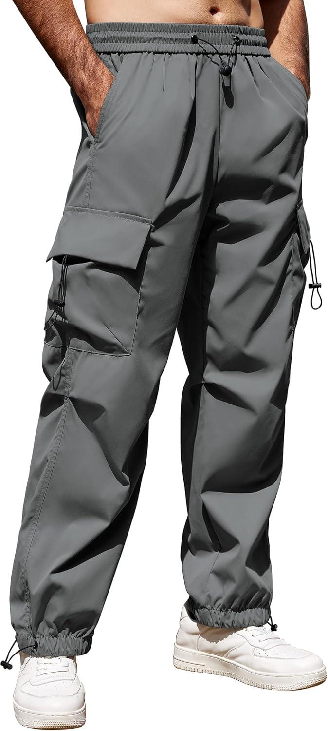 COOFANDY Men's Parachute Cargo Pants Loose Fit Y2K Pants Drawstring Casual Pants Beam Feet Trousers
