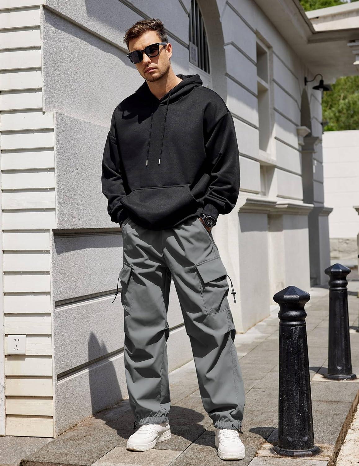 COOFANDY Men's Casual Cargo Pants Relaxed Loose Straight Fit Sweatpants Drawstring Athletic Hiking Jogger With Pockets
