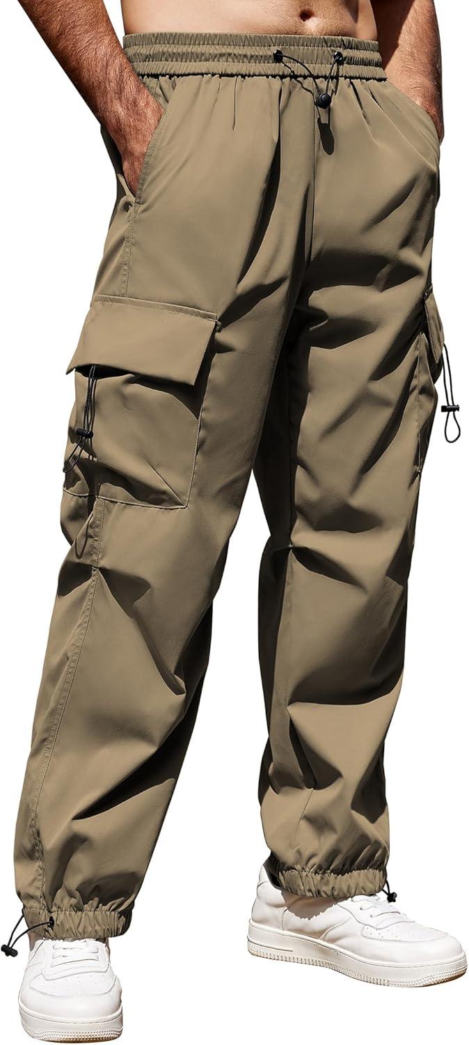 COOFANDY Men's Parachute Cargo Pants Loose Fit Y2K Pants Drawstring Casual Pants Beam Feet Trousers