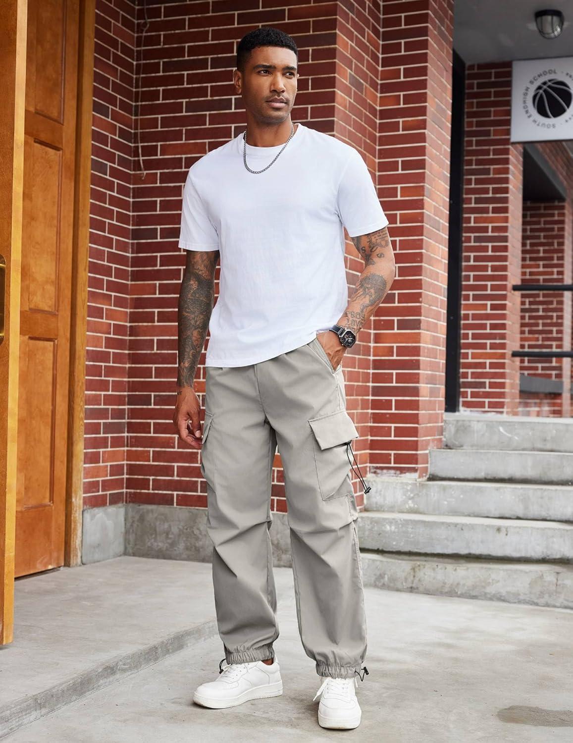 COOFANDY Men's Casual Cargo Pants Relaxed Loose Straight Fit Sweatpants Drawstring Athletic Hiking Jogger With Pockets