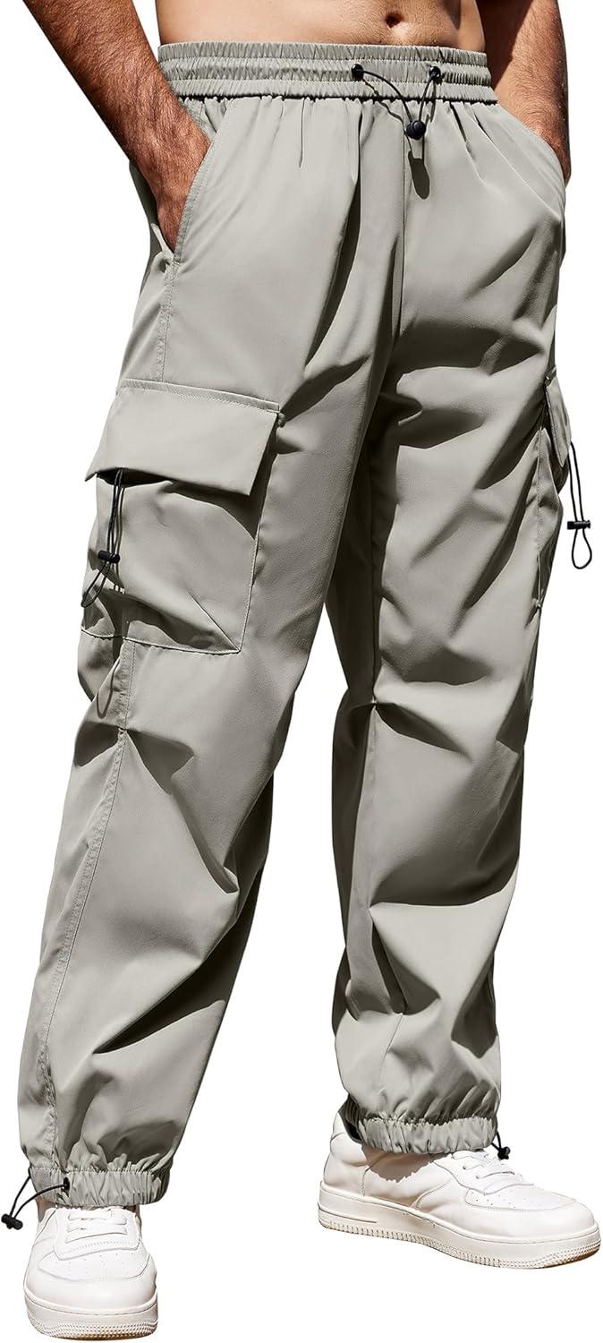 COOFANDY Men's Parachute Cargo Pants Loose Fit Y2K Pants Drawstring Casual Pants Beam Feet Trousers