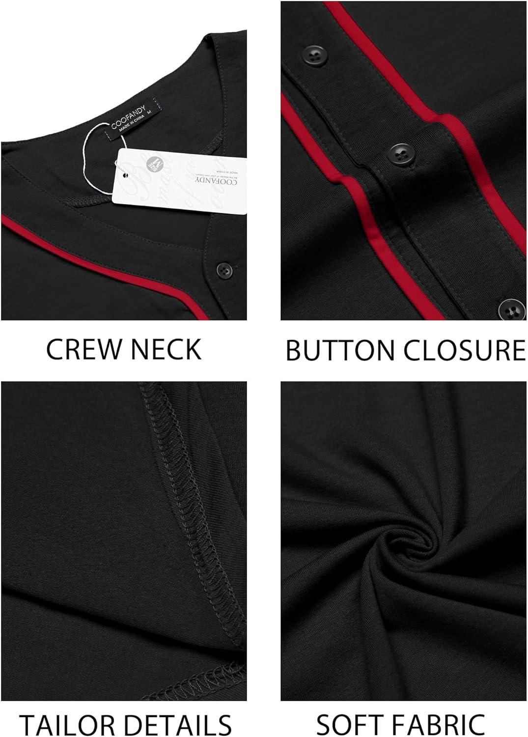 COOFANDY Men's Baseball Button Down Jersey Short Sleeve Hipster Hip Hop T Shirts(Black-red Stripe)