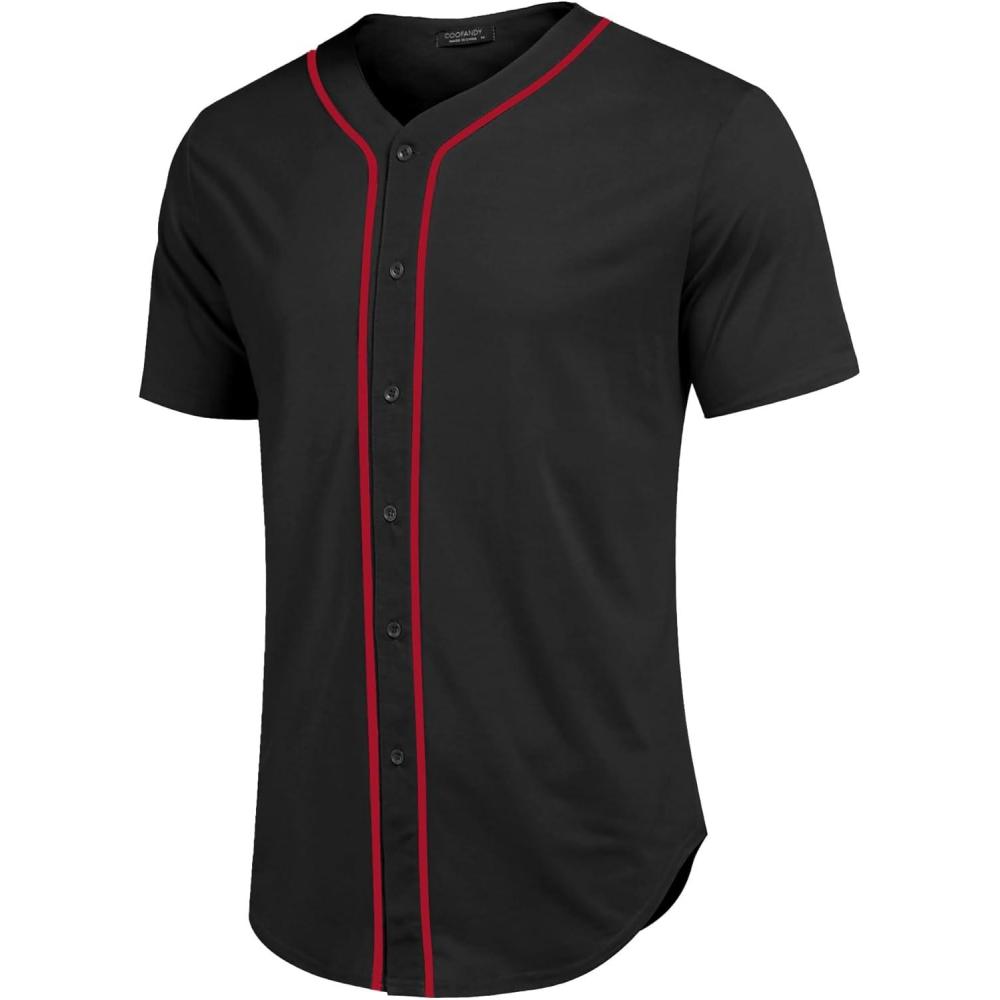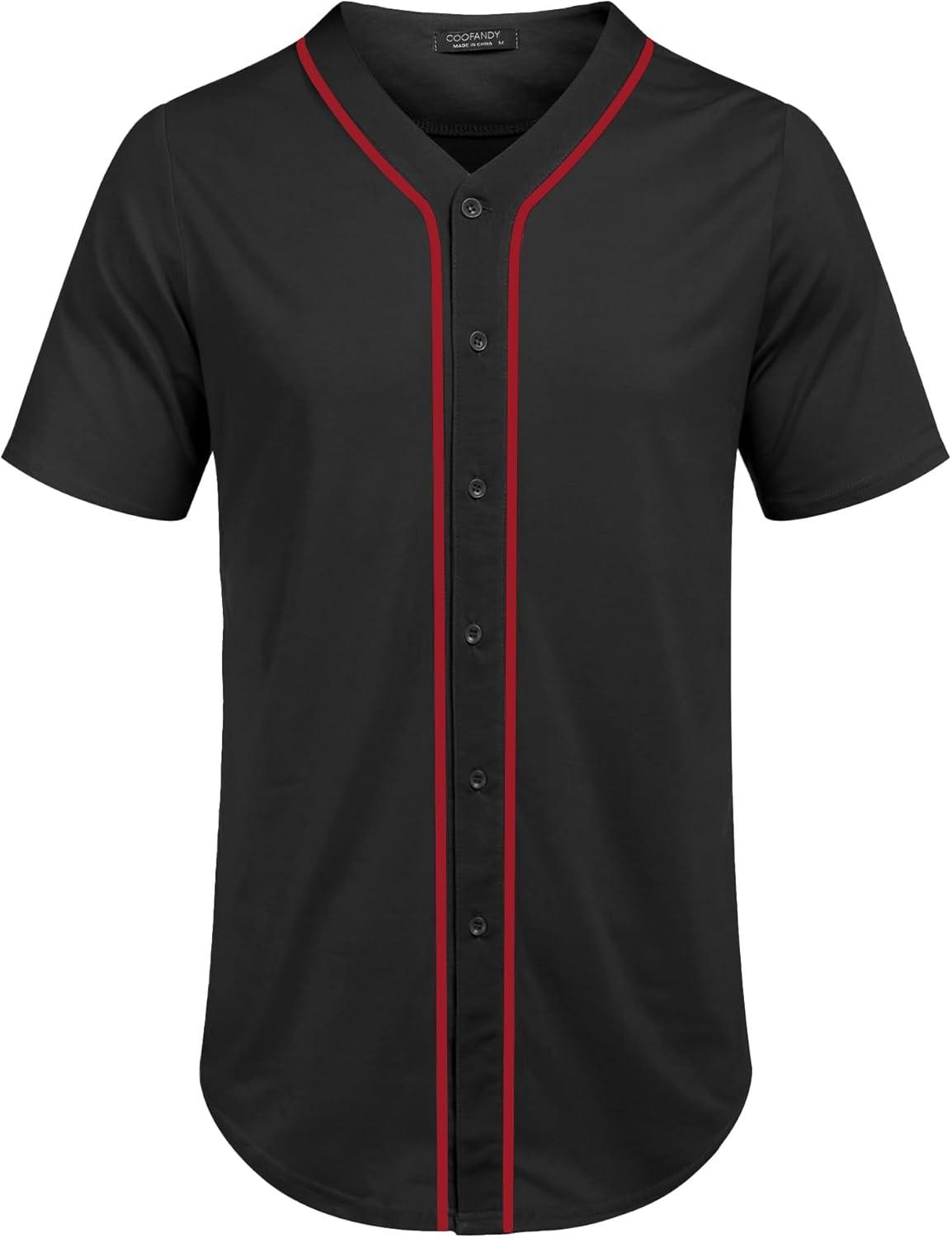 COOFANDY Men’s Baseball Button Down Jersey Short Sleeve Hipster Hip Hop T Shirts(Black-red Stripe)