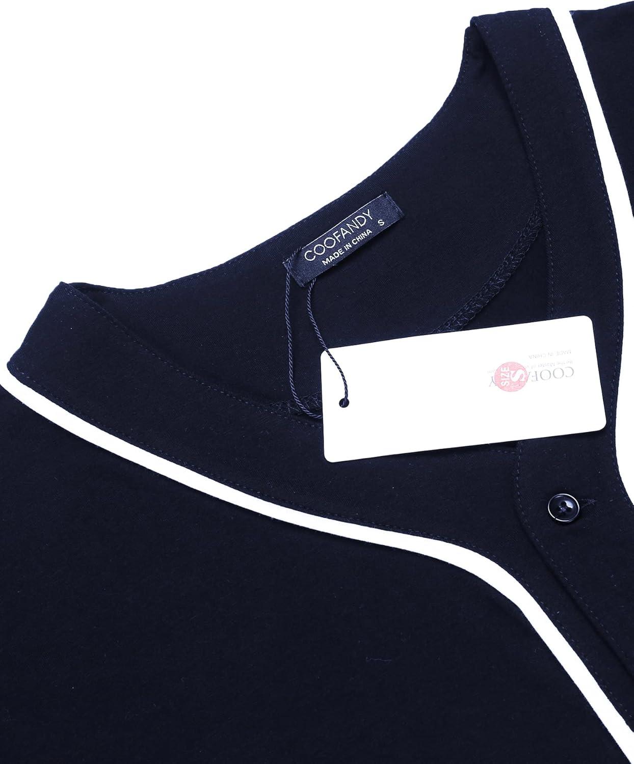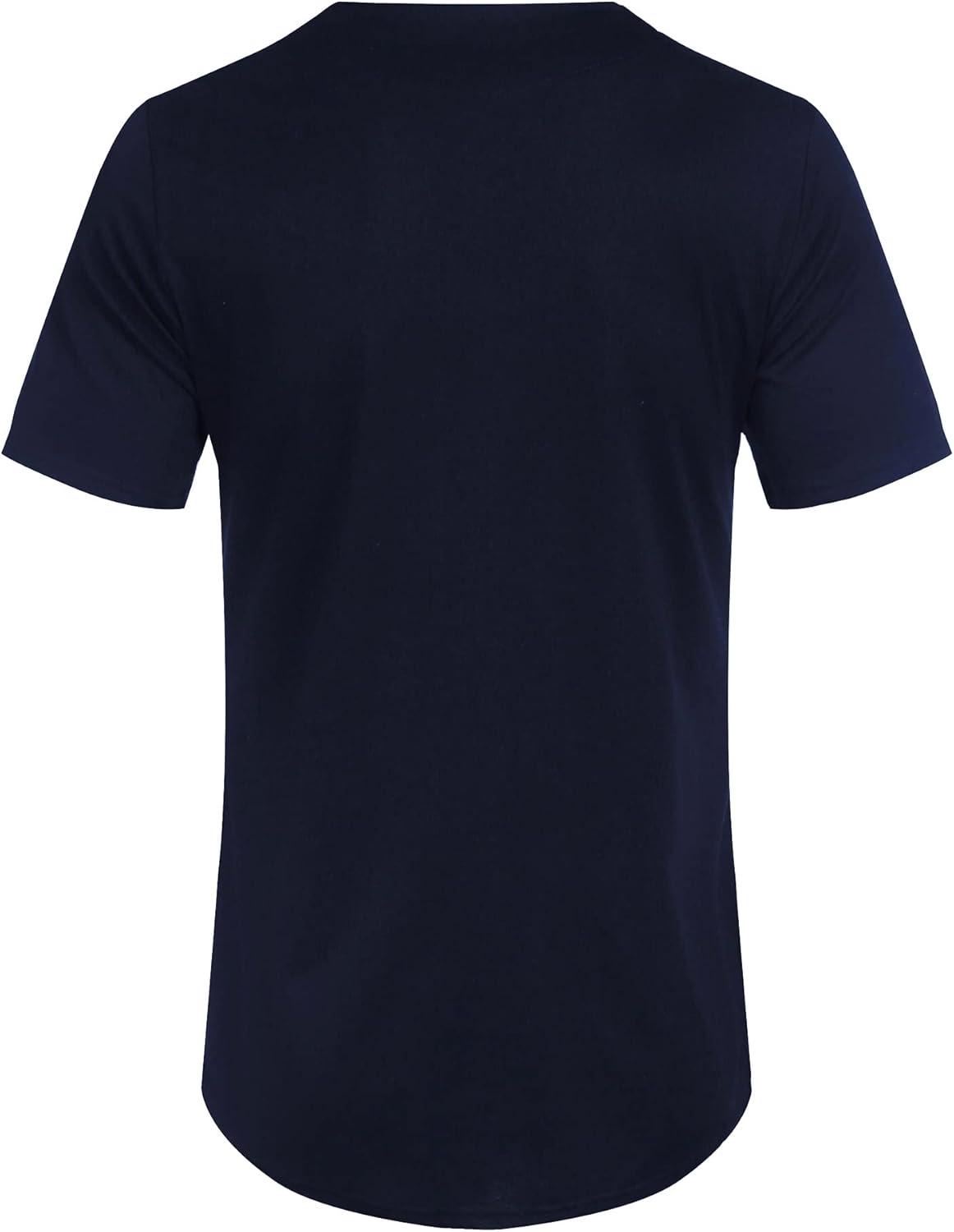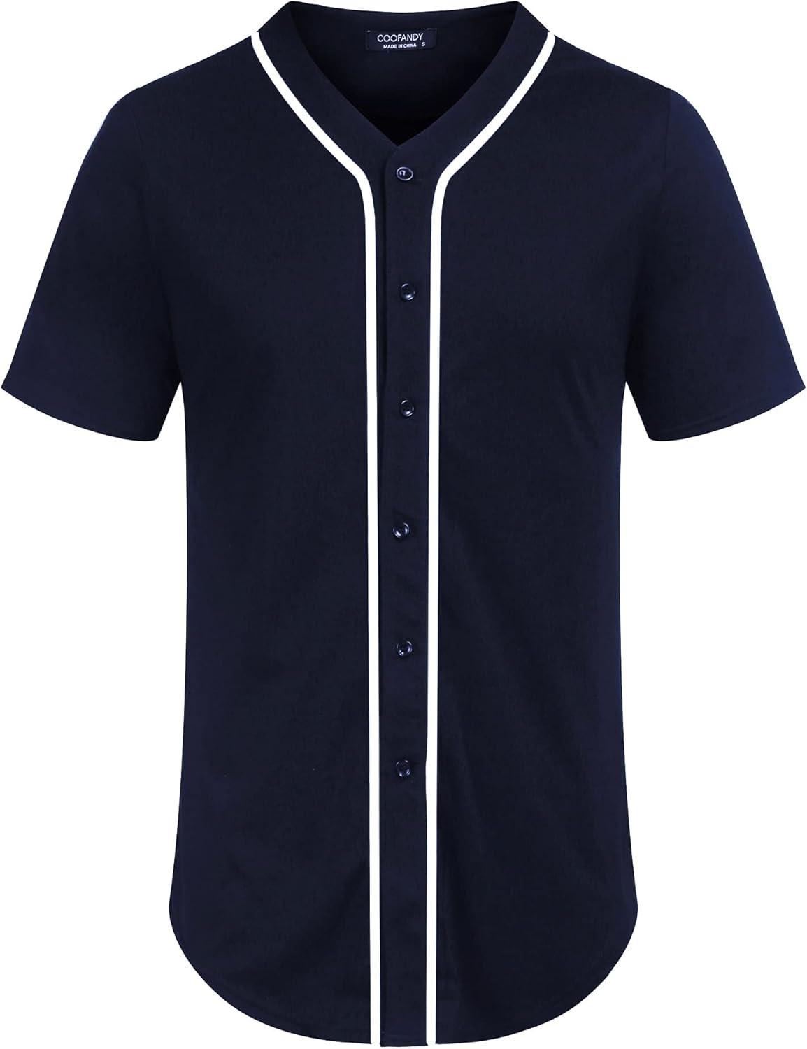 COOFANDY Men's Baseball Button Down Jersey Short Sleeve Hipster Hip Hop T Shirts(Navy Blue)