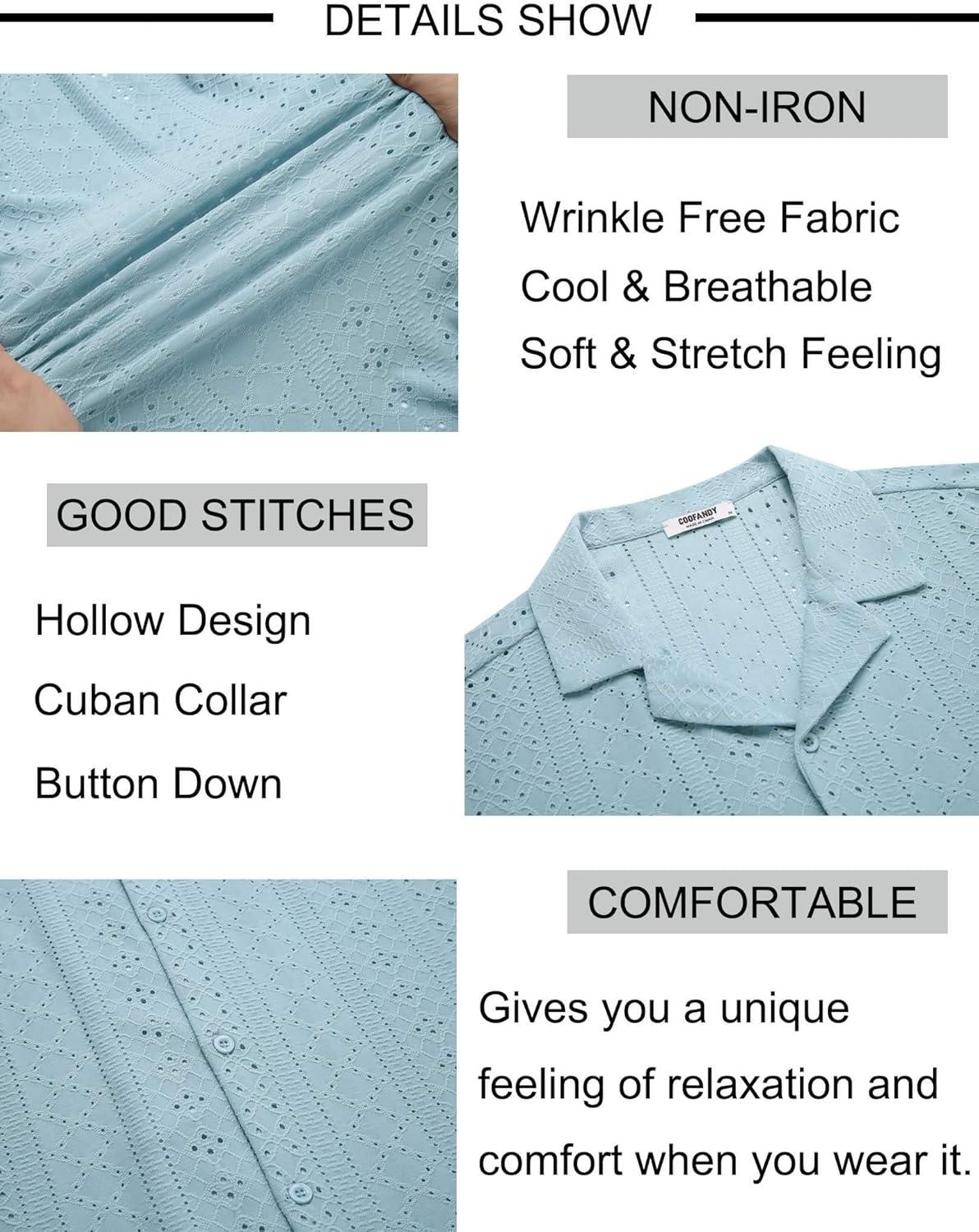 Be the first to review “COOFANDY Mens Beach Shirt Short Sleeve Button Down Shirts Casual Cuban Collared Summer Vacation Tropical Shirts(Light Blue)”