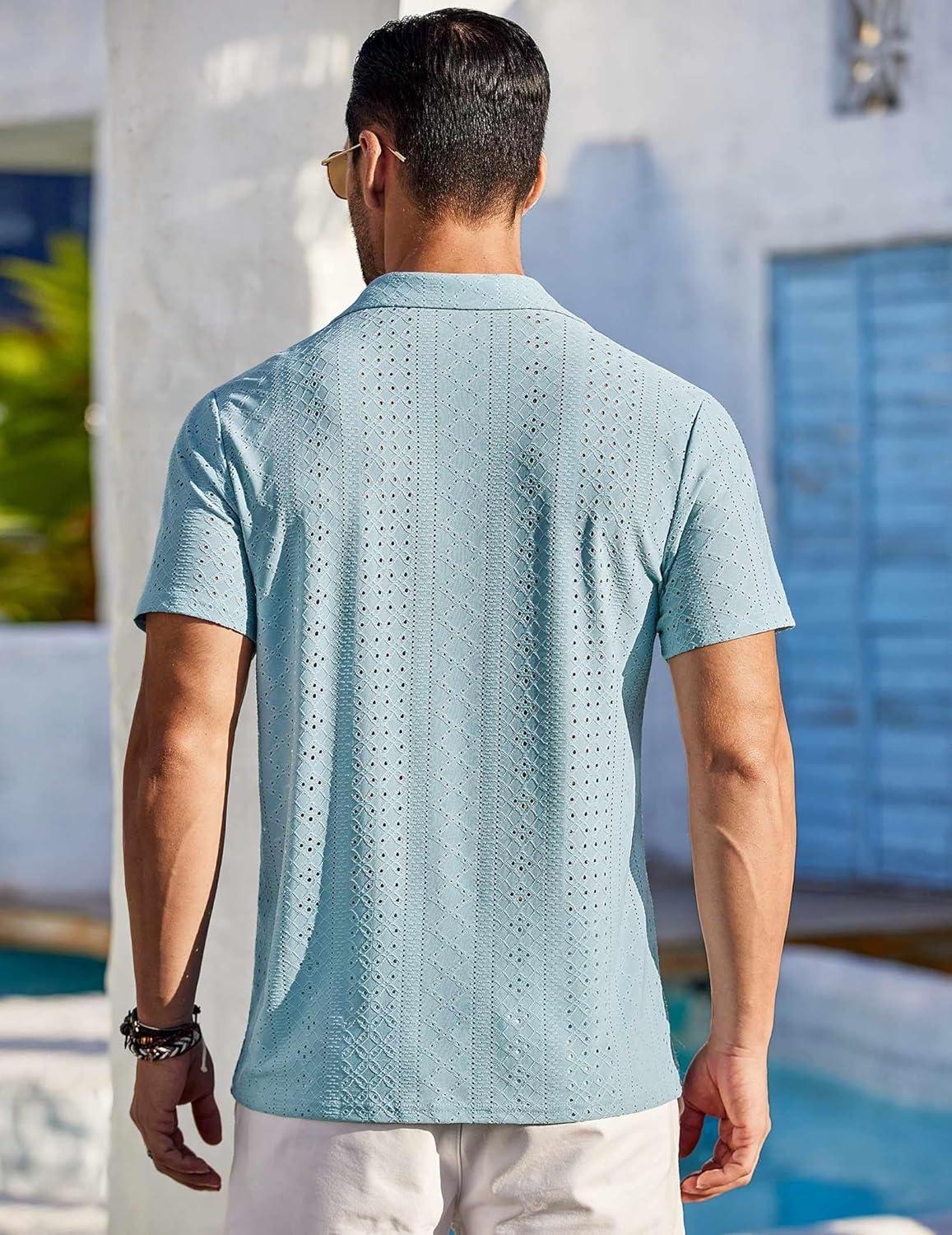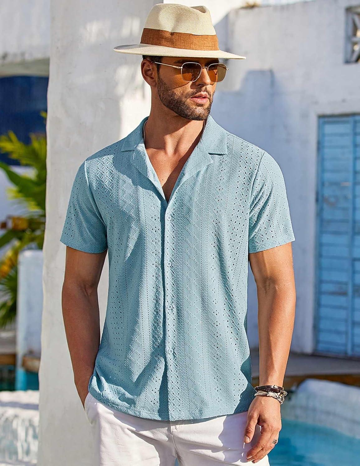 COOFANDY Mens Beach Shirt Short Sleeve Button Down Shirts Casual Cuban Collared Summer Vacation Tropical Shirts(Light Blue)