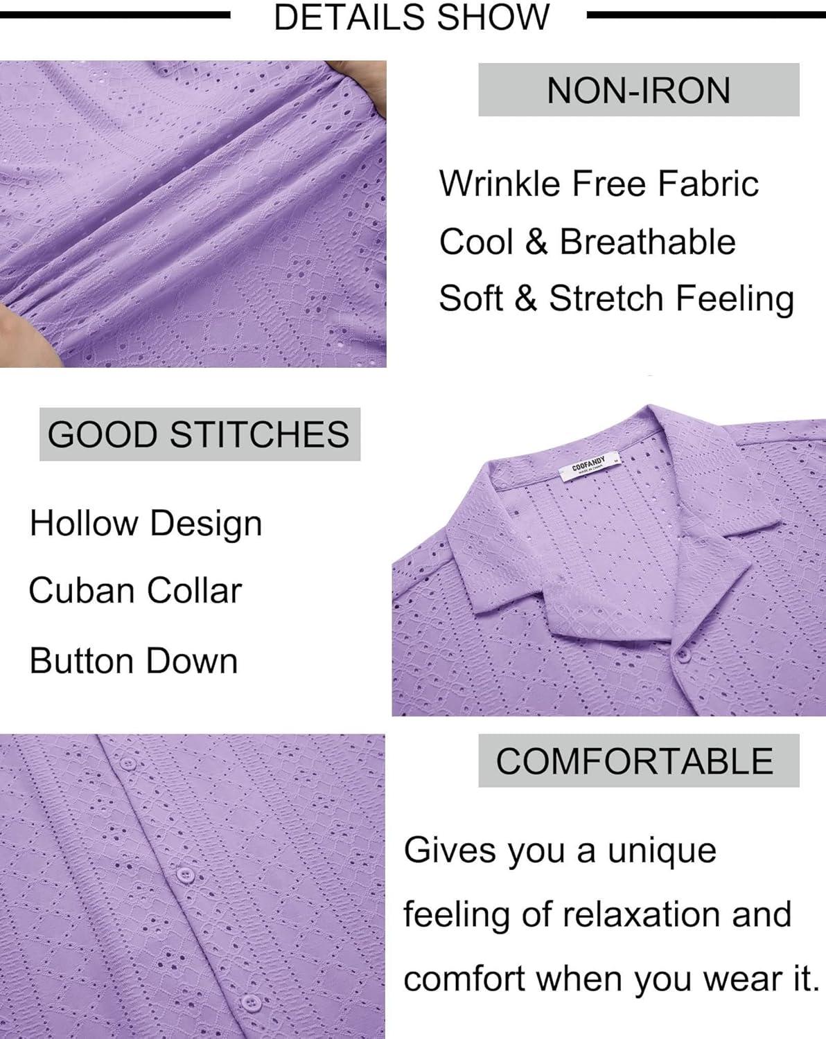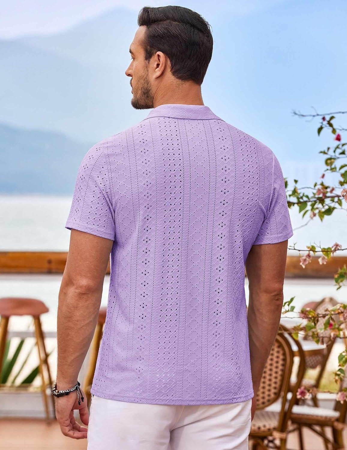 COOFANDY Mens Beach Shirt Short Sleeve Button Down Shirts Casual Cuban Collared Summer Vacation Tropical Shirts(Light Purple)
