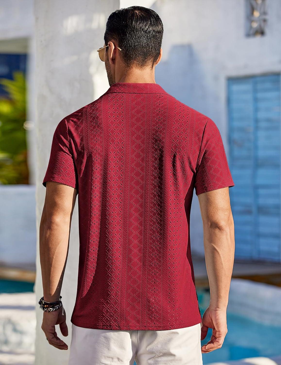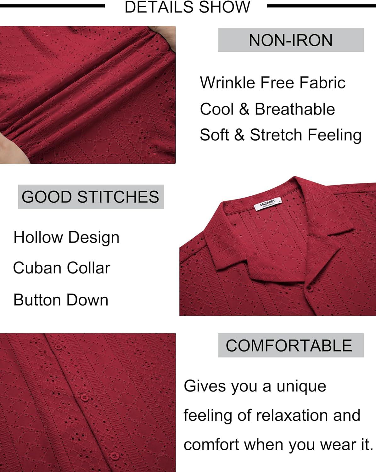 COOFANDY Mens Beach Shirt Short Sleeve Button Down Shirts Casual Cuban Collared Summer Vacation Tropical Shirts(Wine Red)