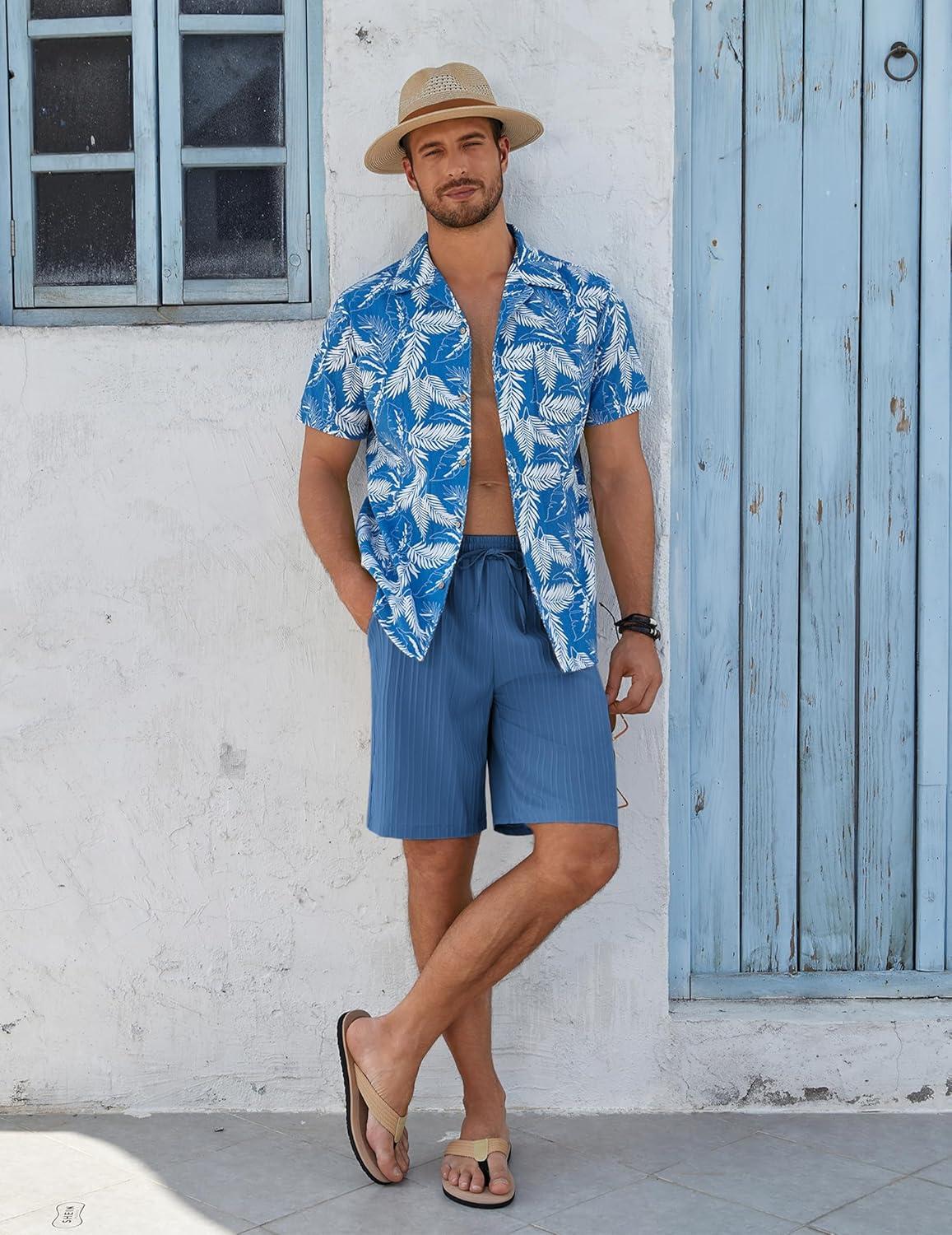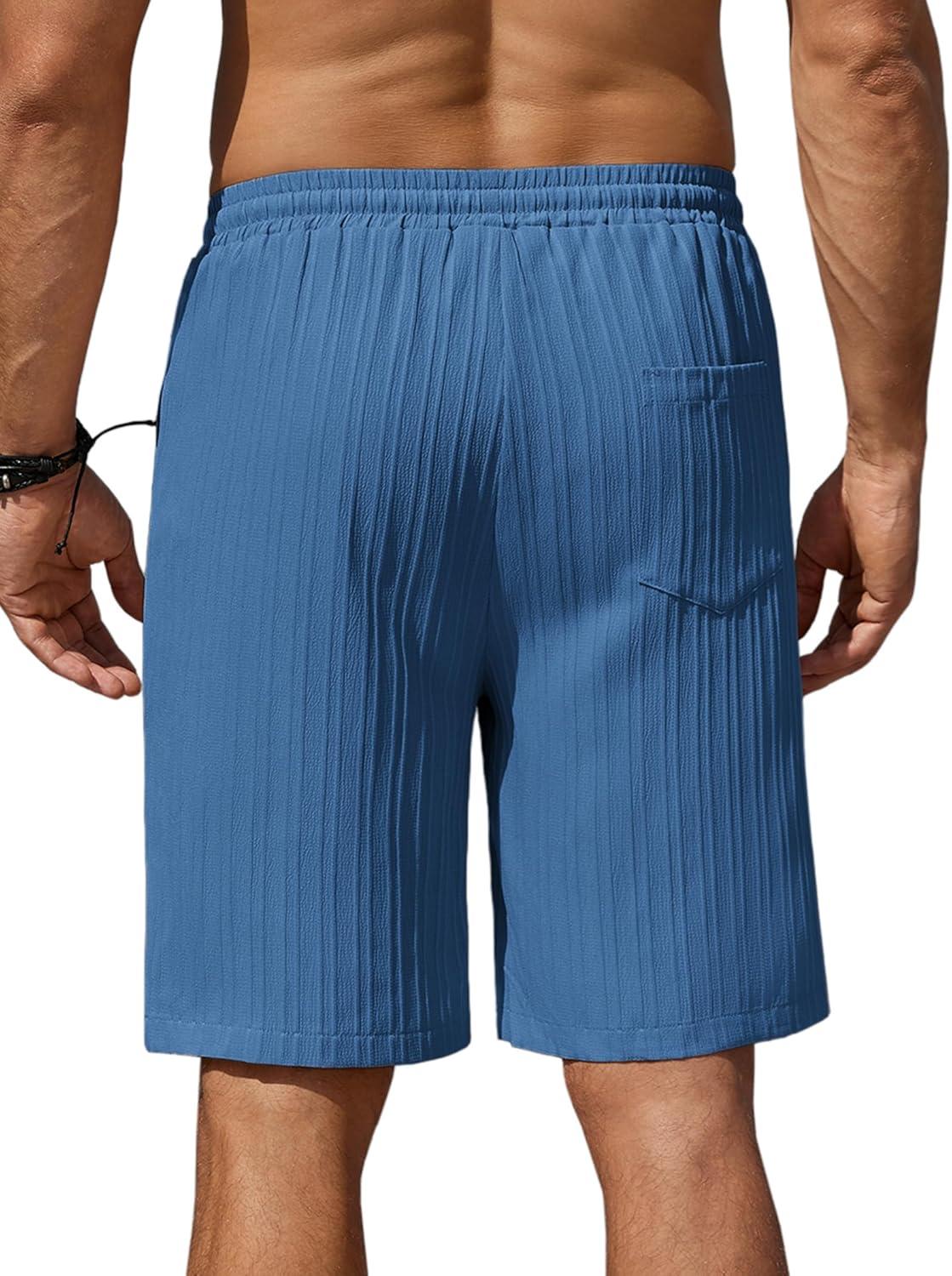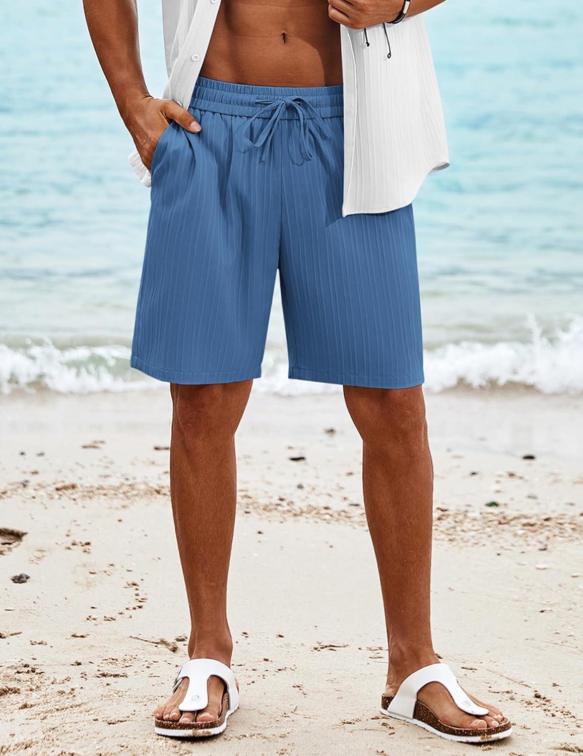 COOFANDY Men’s Beach Shorts 9″ Elastic Waist Drawstring Casual Shorts Regular Fit Summer Textured Shorts(Blue)