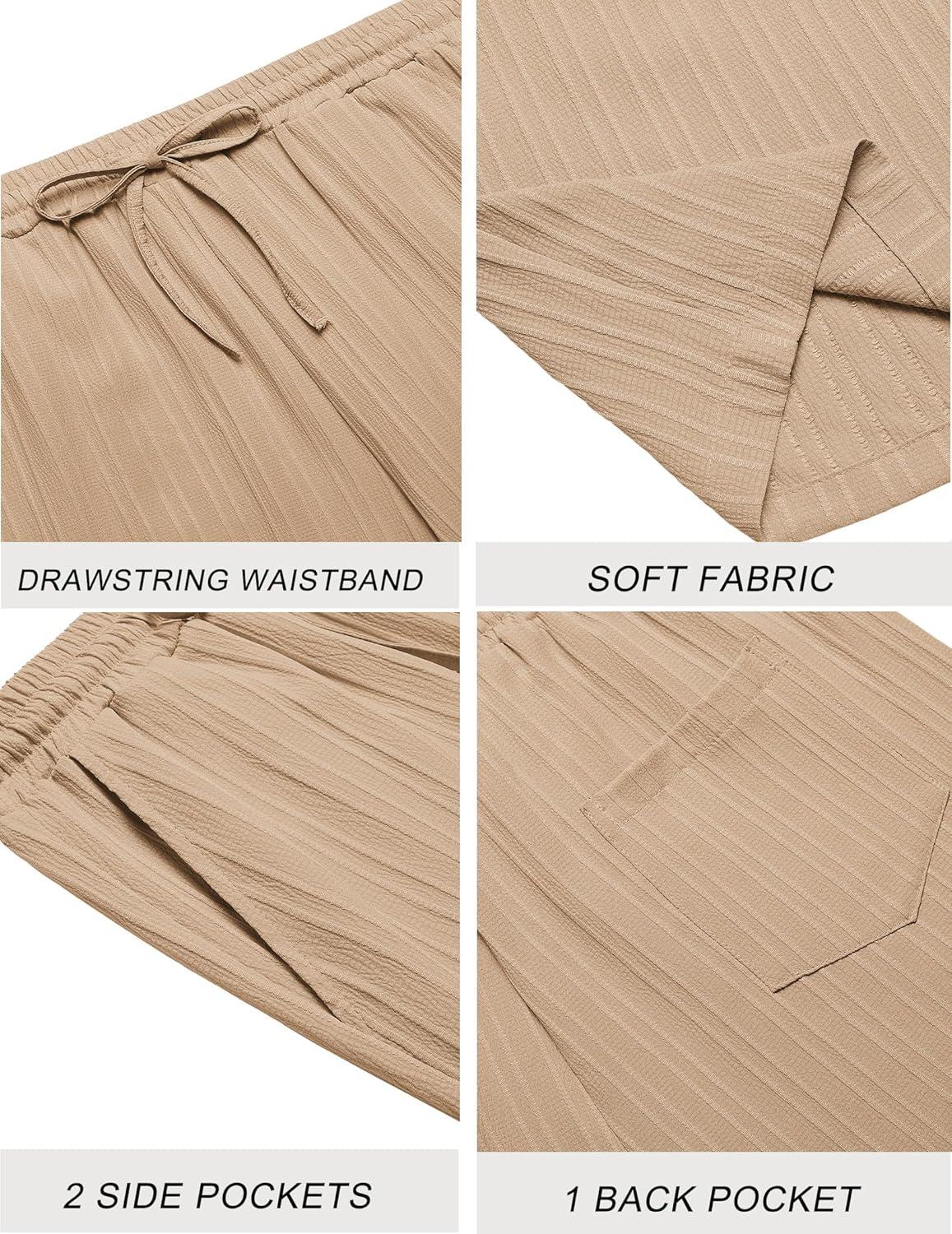 COOFANDY Men’s Beach Shorts 9″ Elastic Waist Drawstring Casual Shorts Regular Fit Summer Textured Shorts(Khaki)