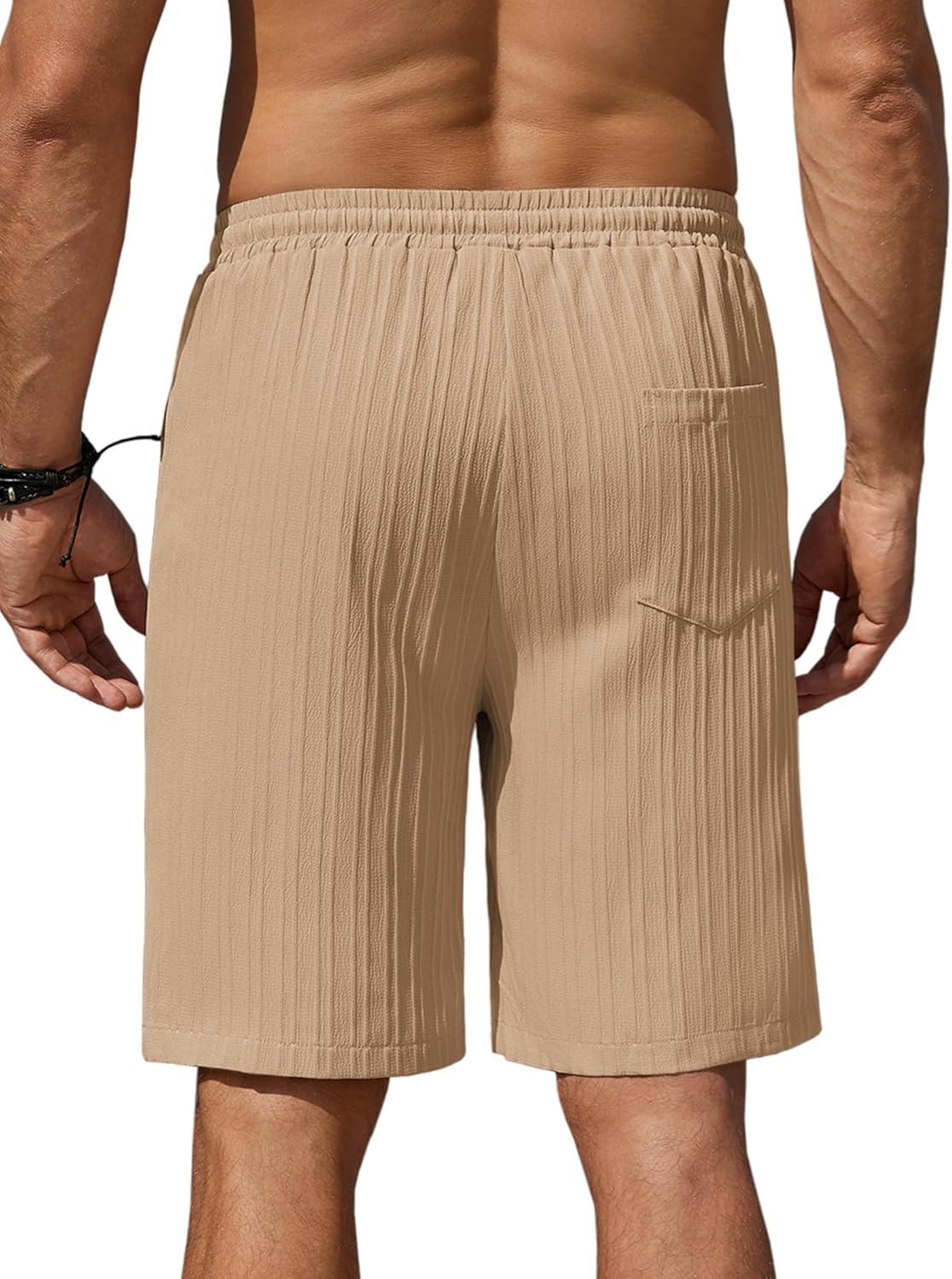 COOFANDY Men’s Beach Shorts 9″ Elastic Waist Drawstring Casual Shorts Regular Fit Summer Textured Shorts(Light Khaki)