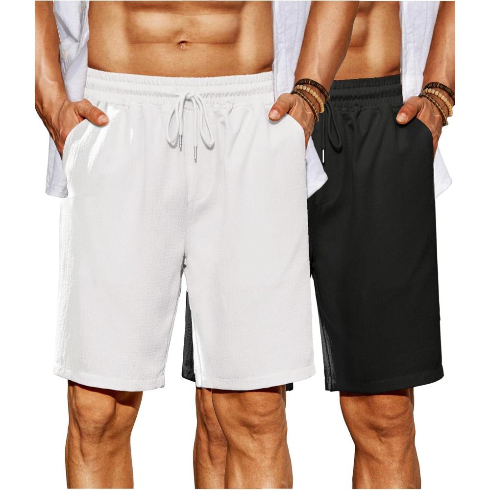 imageCOOFANDY Mens Beach Shorts 9quot Elastic Waist Drawstring Shorts Lightweight Regular Fit Casual Summer ShortsBlackWhite