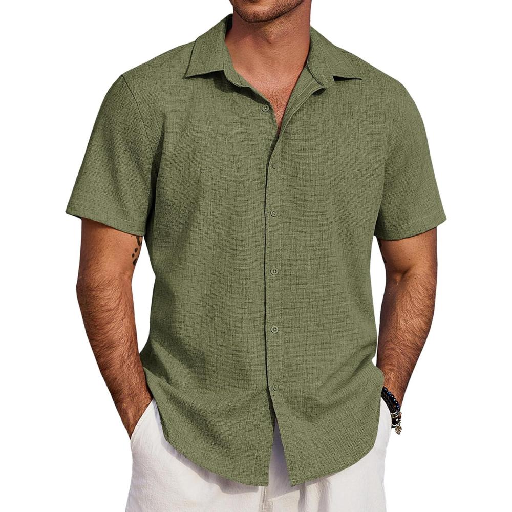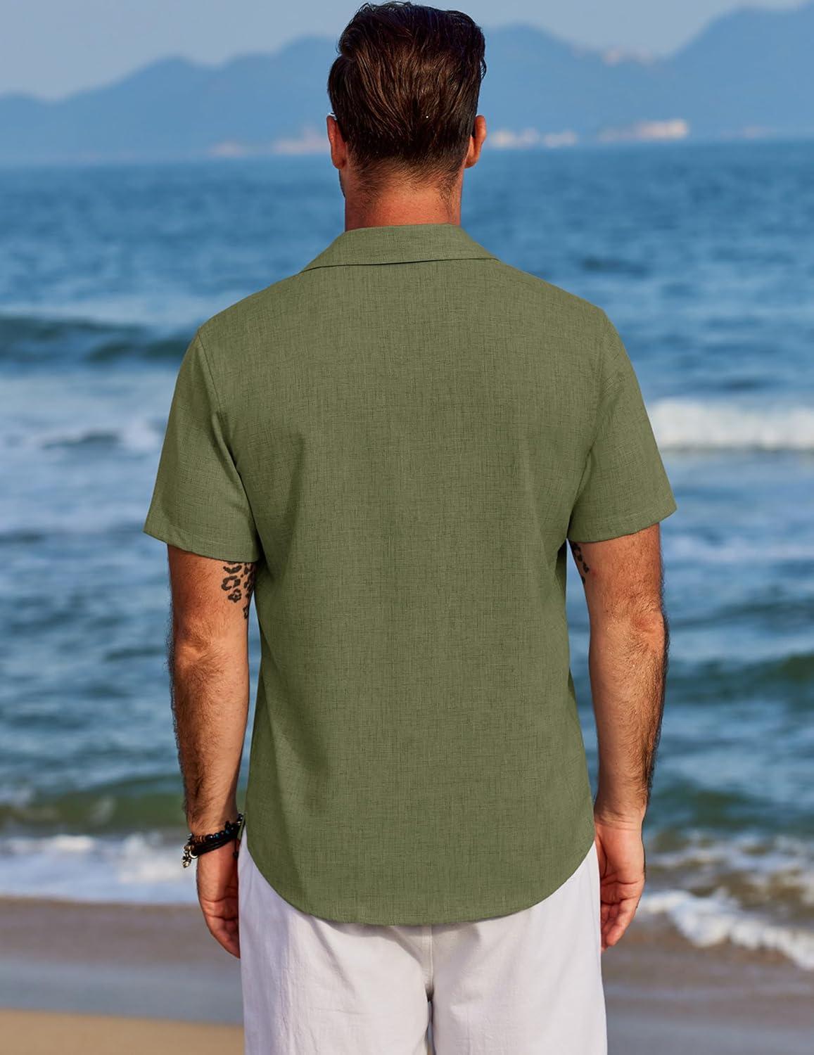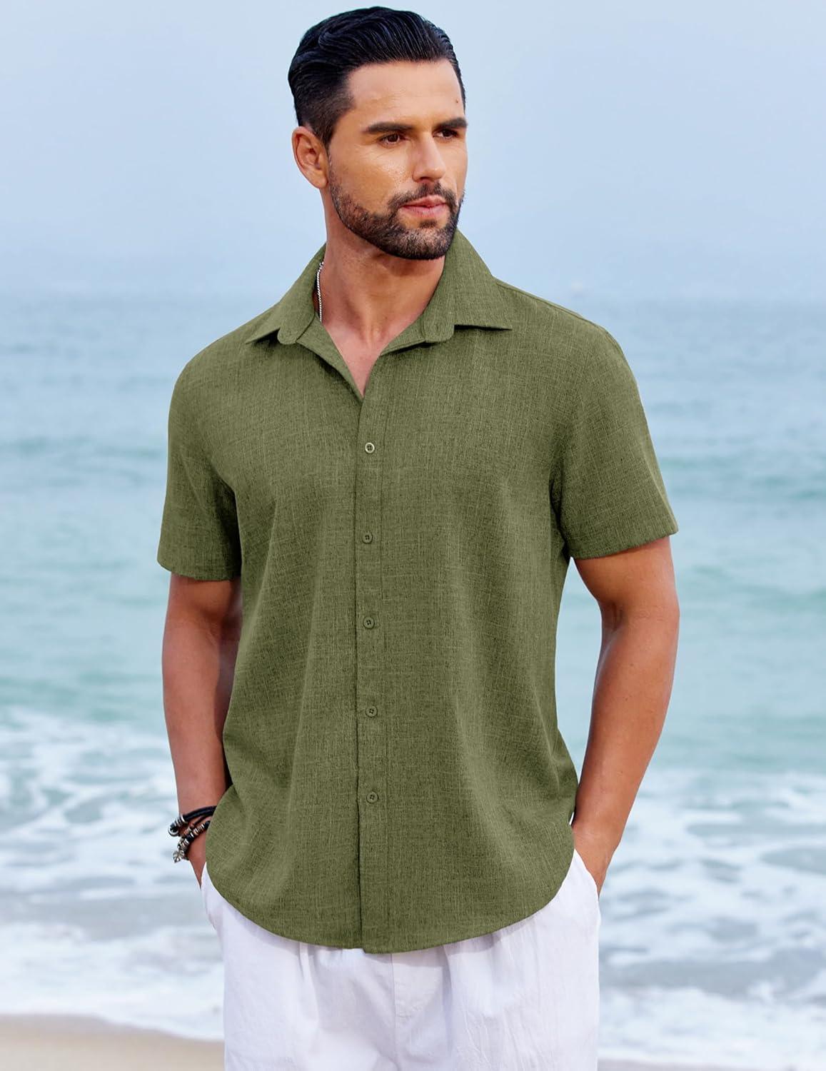 COOFANDY Men's Beach Summer Shirts Linen Texture Shirts Short Sleeve Casual Button Down Shirt(Army Green)