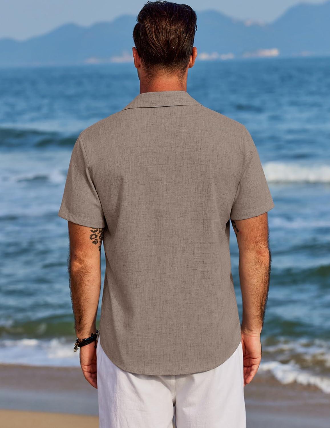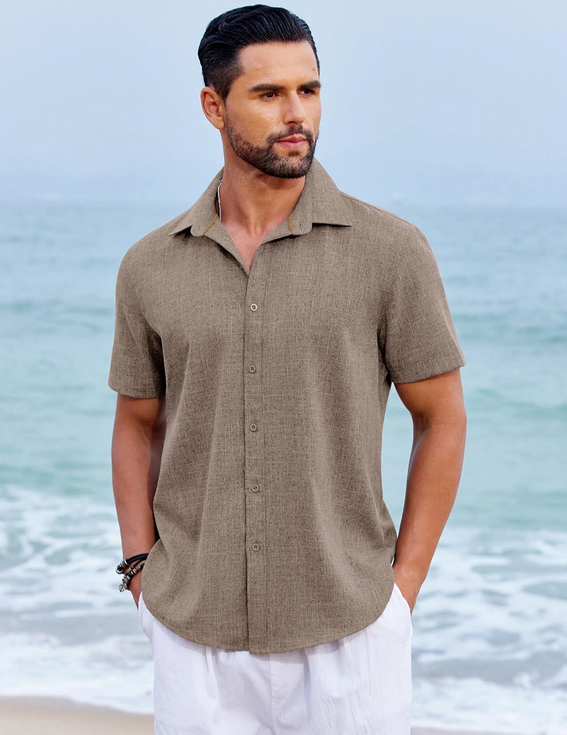 COOFANDY Men's Beach Summer Shirts Linen Texture Shirts Short Sleeve Casual Button Down Shirt(Brown)