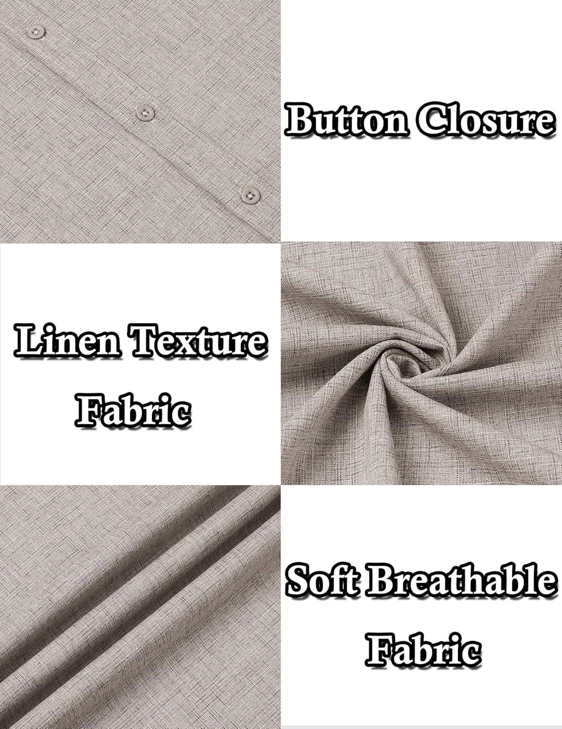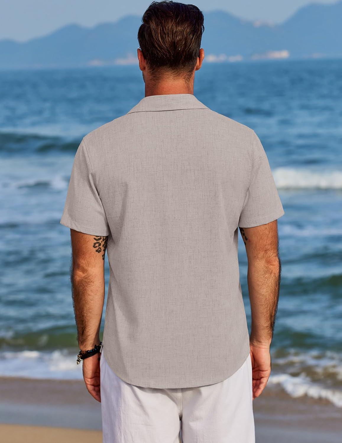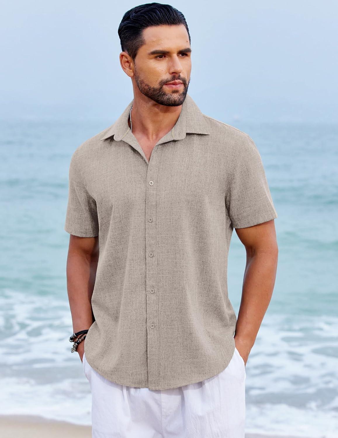 COOFANDY Men’s Beach Summer Shirts Linen Texture Shirts Short Sleeve Casual Button Down Shirt(Champagne)