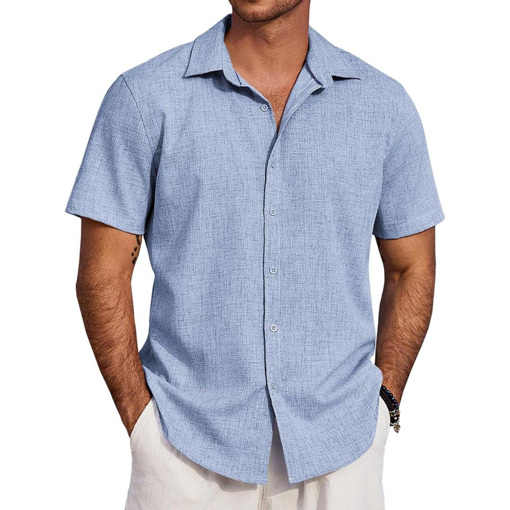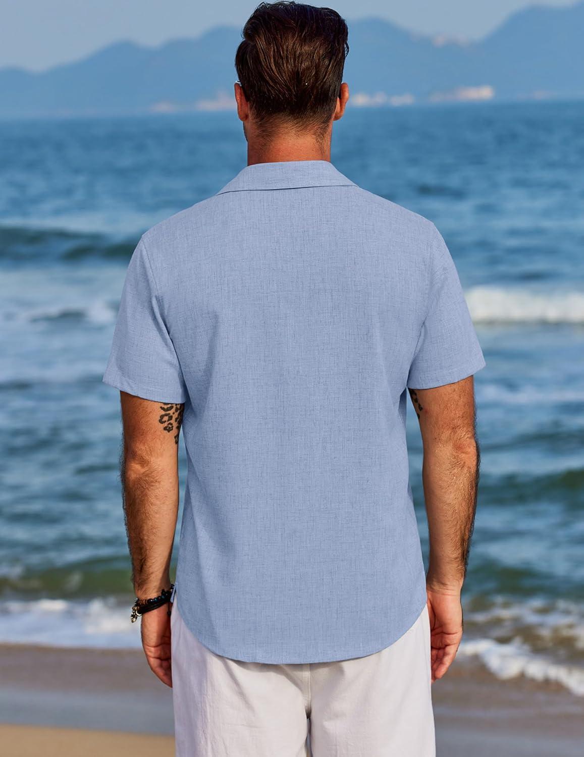 COOFANDY Men's Beach Summer Shirts Linen Texture Shirts Short Sleeve Casual Button Down Shirt(Classic Blue)