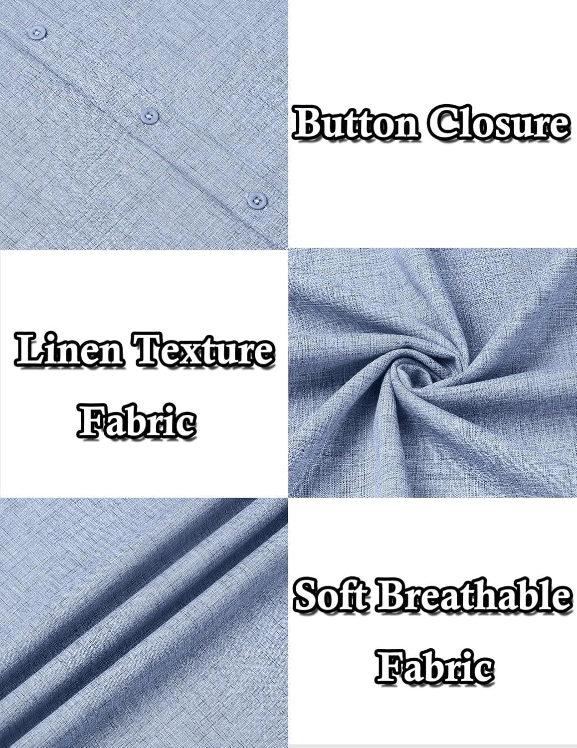 COOFANDY Men’s Beach Summer Shirts Linen Texture Shirts Short Sleeve Casual Button Down Shirt(Classic Blue)