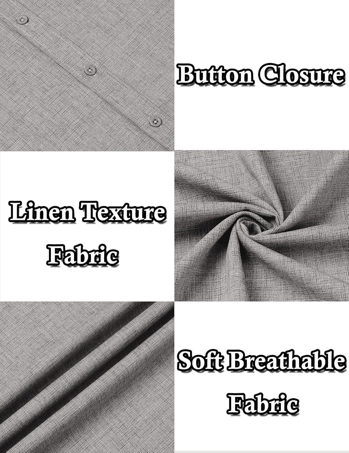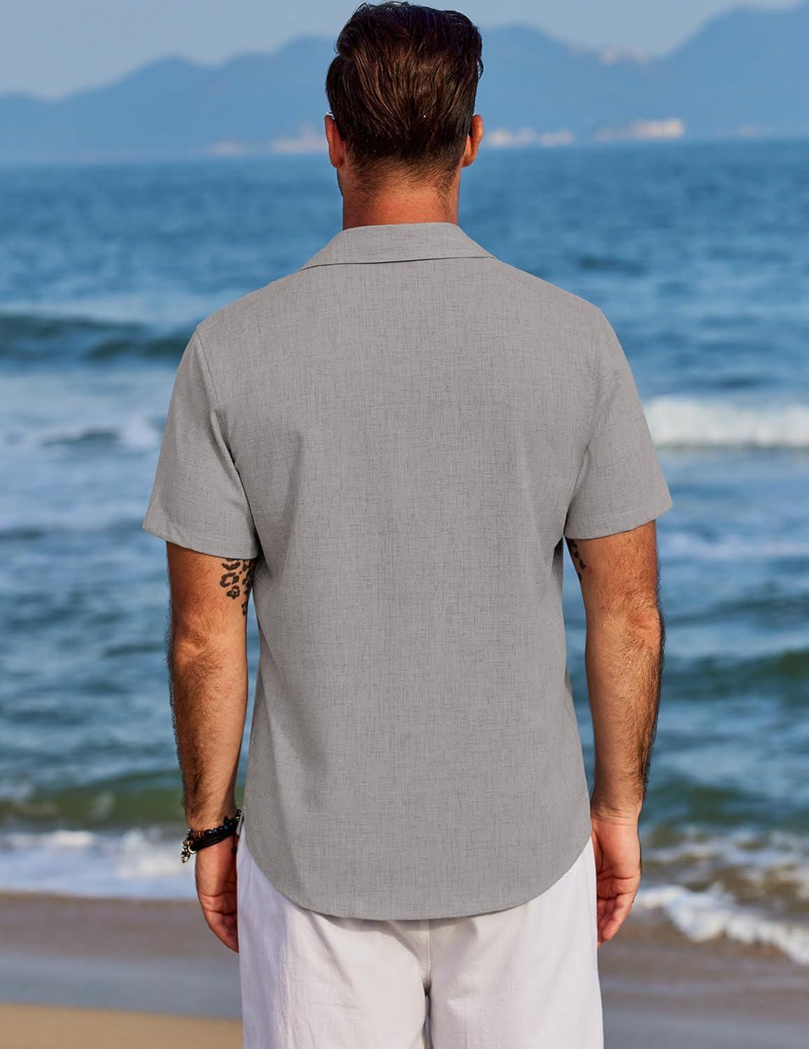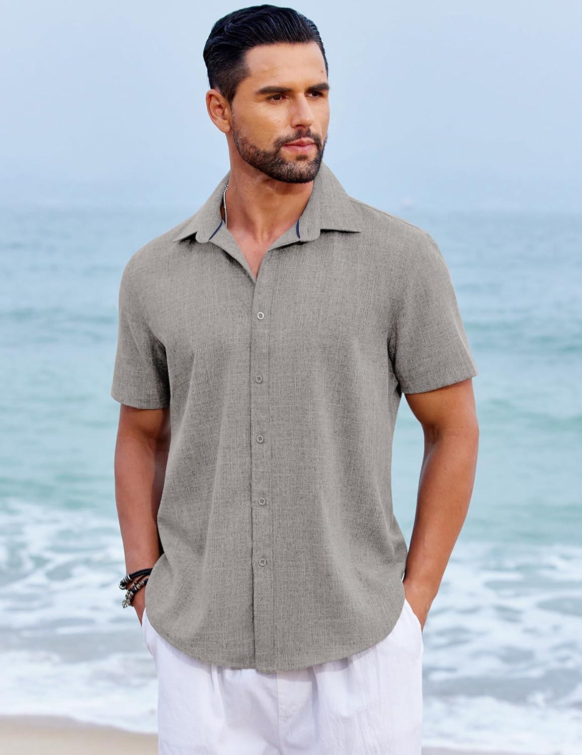 COOFANDY Men’s Beach Summer Shirts Linen Texture Shirts Short Sleeve Casual Button Down Shirt(Light Gray)