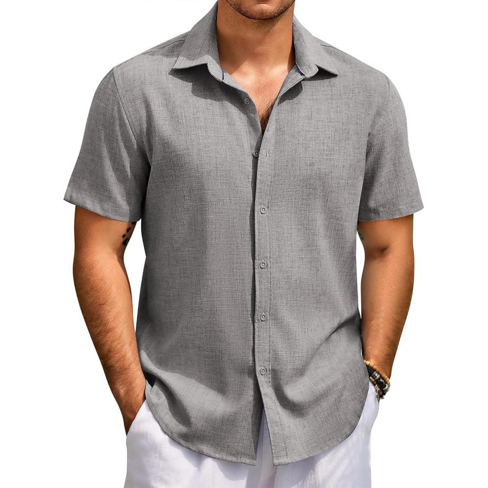 COOFANDY Men's Beach Summer Shirts Linen Texture Shirts Short Sleeve Casual Button Down Shirt(Light Gray)