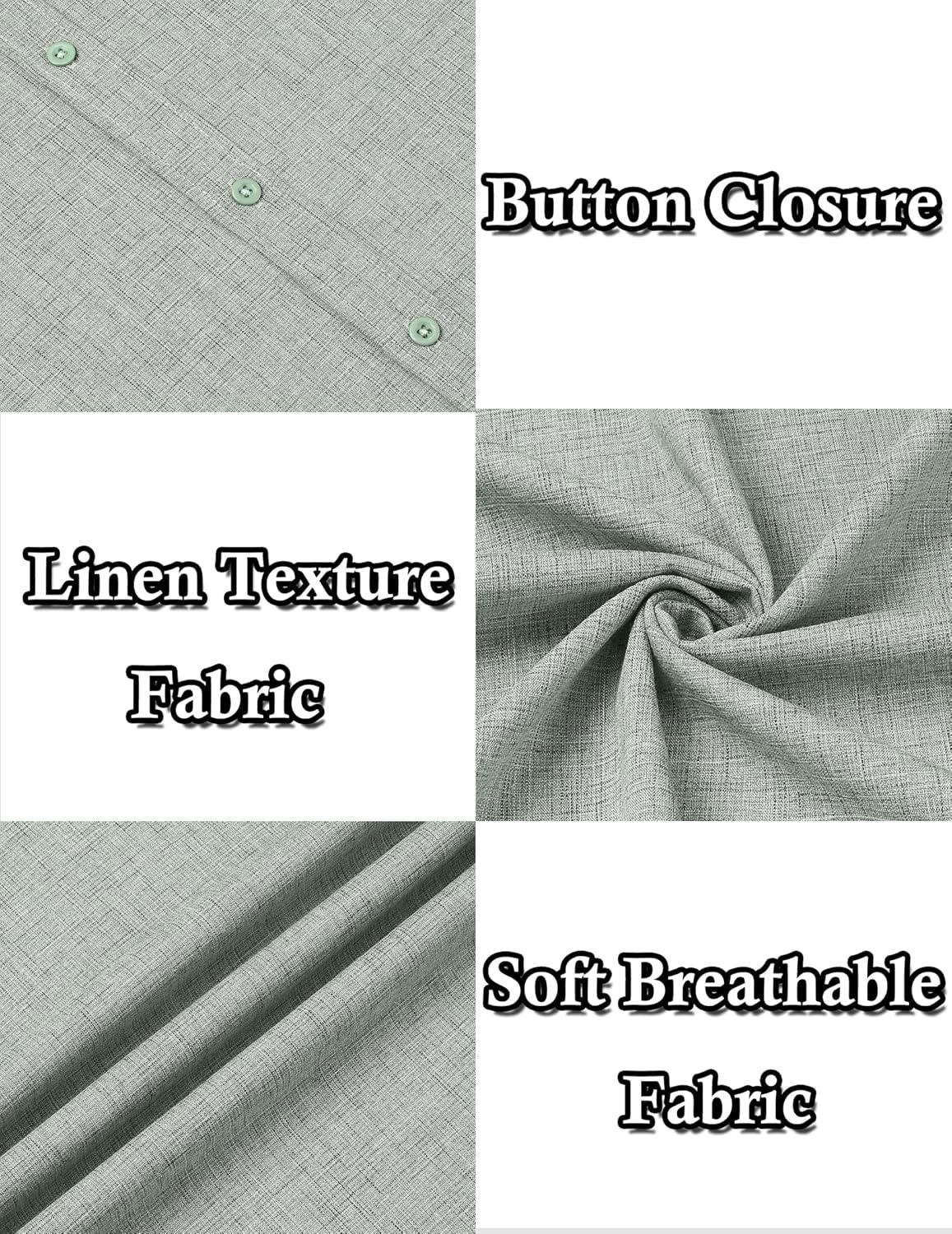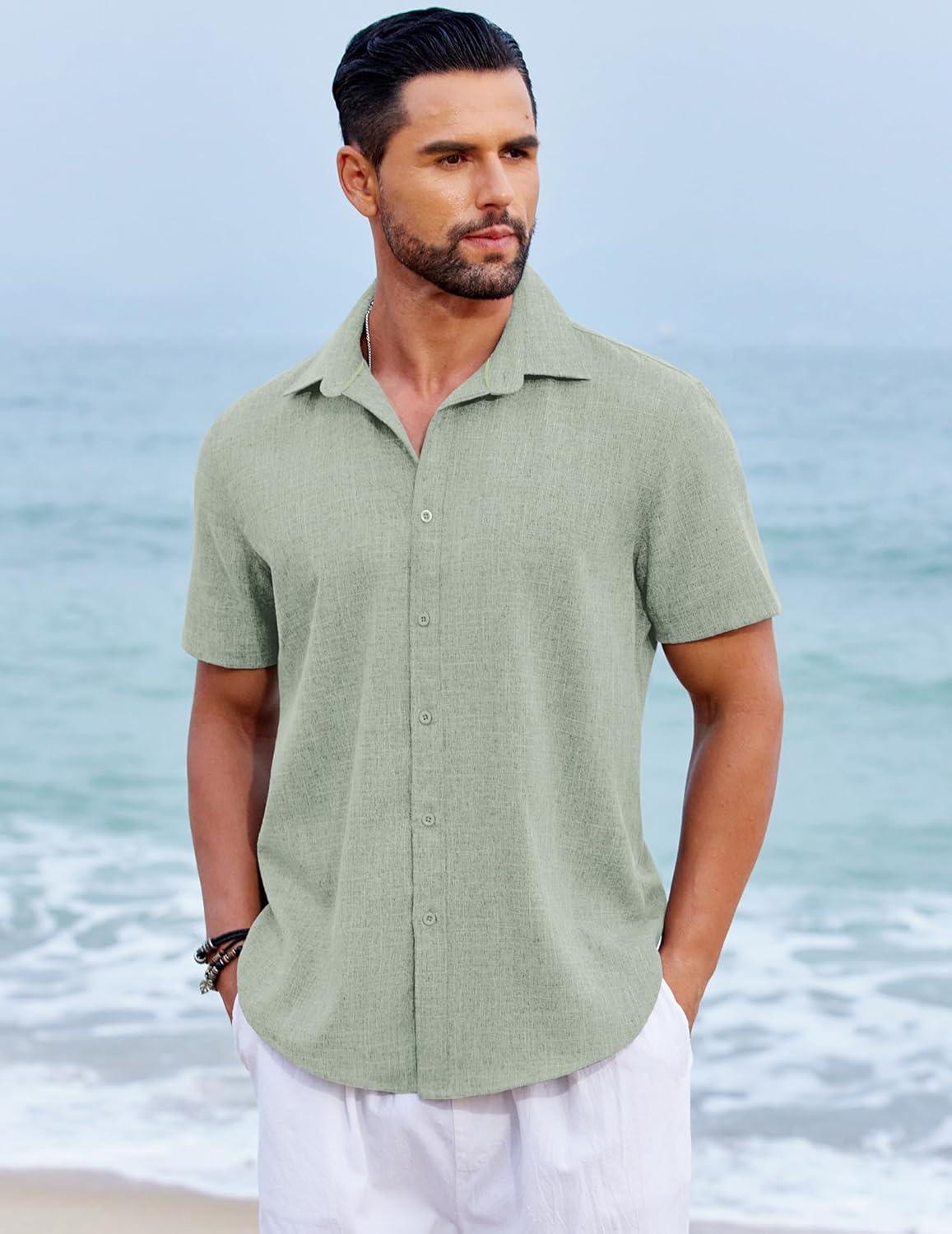 COOFANDY Men's Beach Summer Shirts Linen Texture Shirts Short Sleeve Casual Button Down Shirt(Light Green)