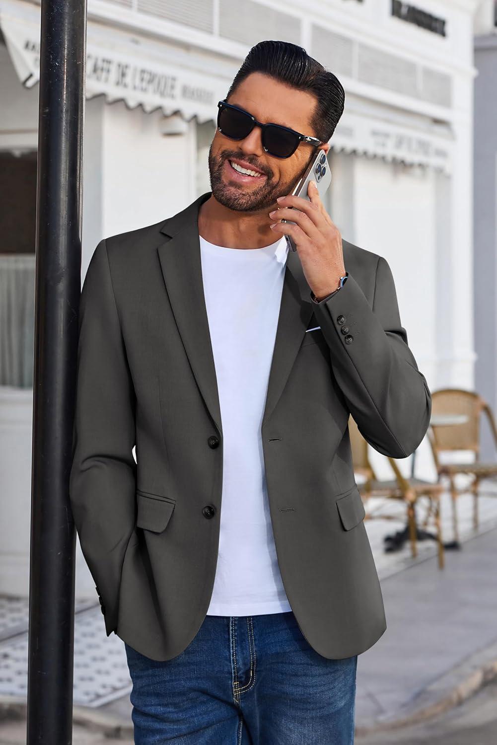 COOFANDY Men’s Blazer Business Suit Jacket Slim Fit Two Button Casual Sport Coats(Dark Grey)