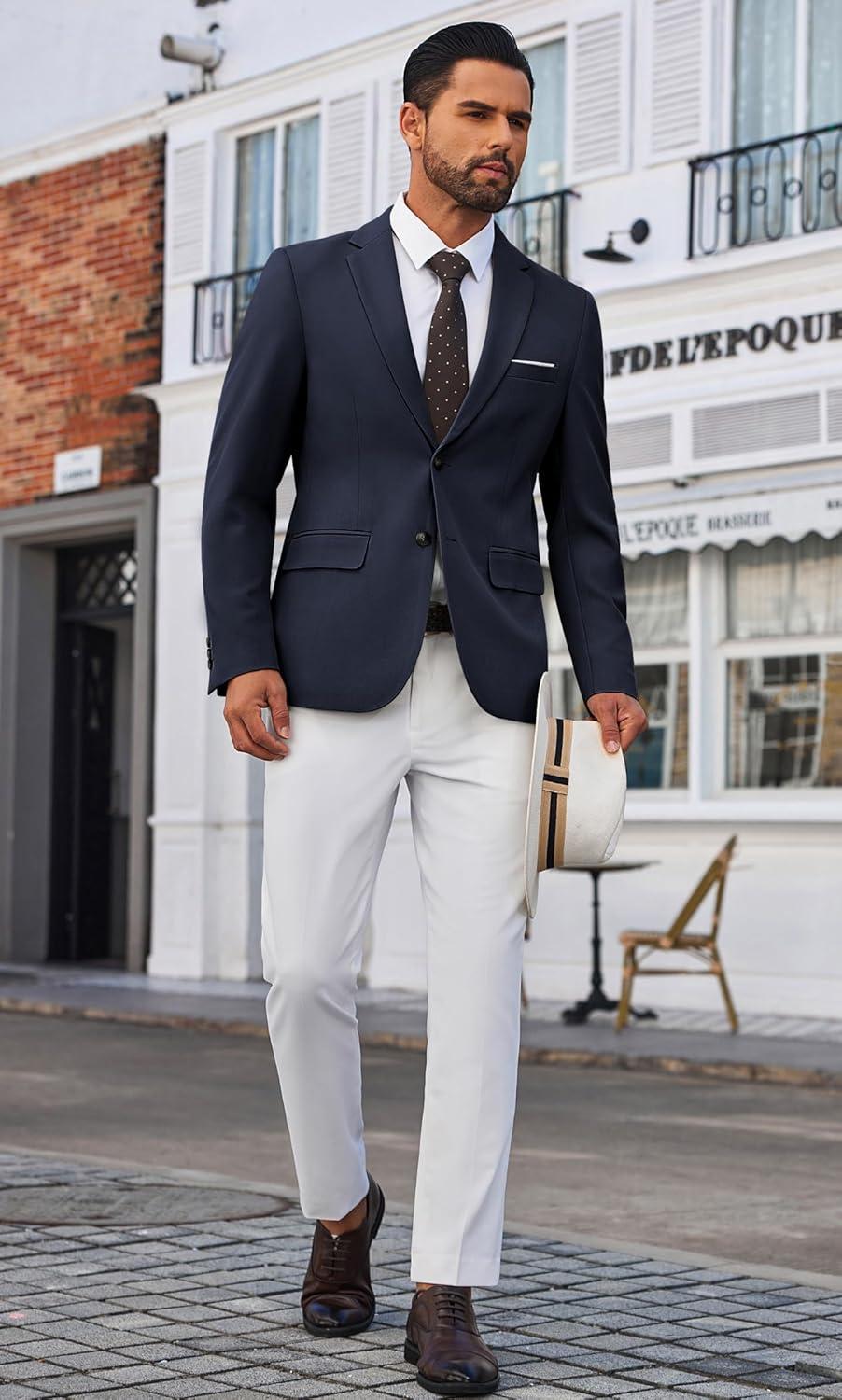 COOFANDY Men’s Blazer Business Suit Jacket Slim Fit Two Button Casual Sport Coats(White)