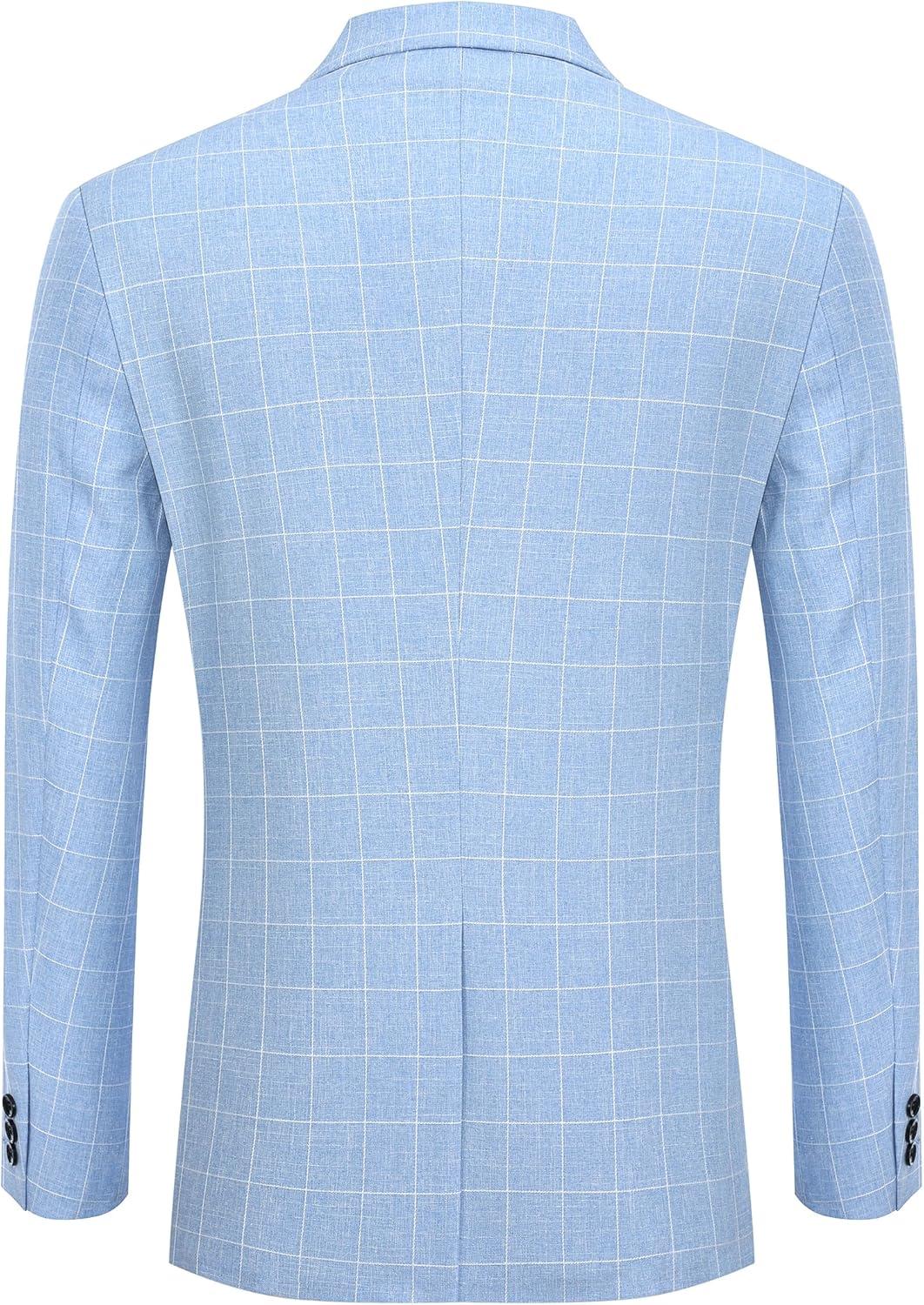 COOFANDY Men's Blazer Casual Slim Fit Sport Coats Two Button Lightweight Suit Jacket(Checkered Blazer - Clear Blue)