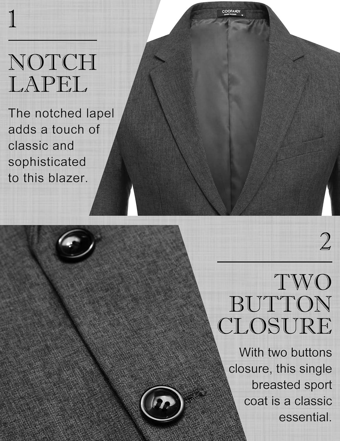 COOFANDY Men's Blazer Casual Slim Fit Sport Coats Two Button Lightweight Suit Jacket(Dark Charcoal)