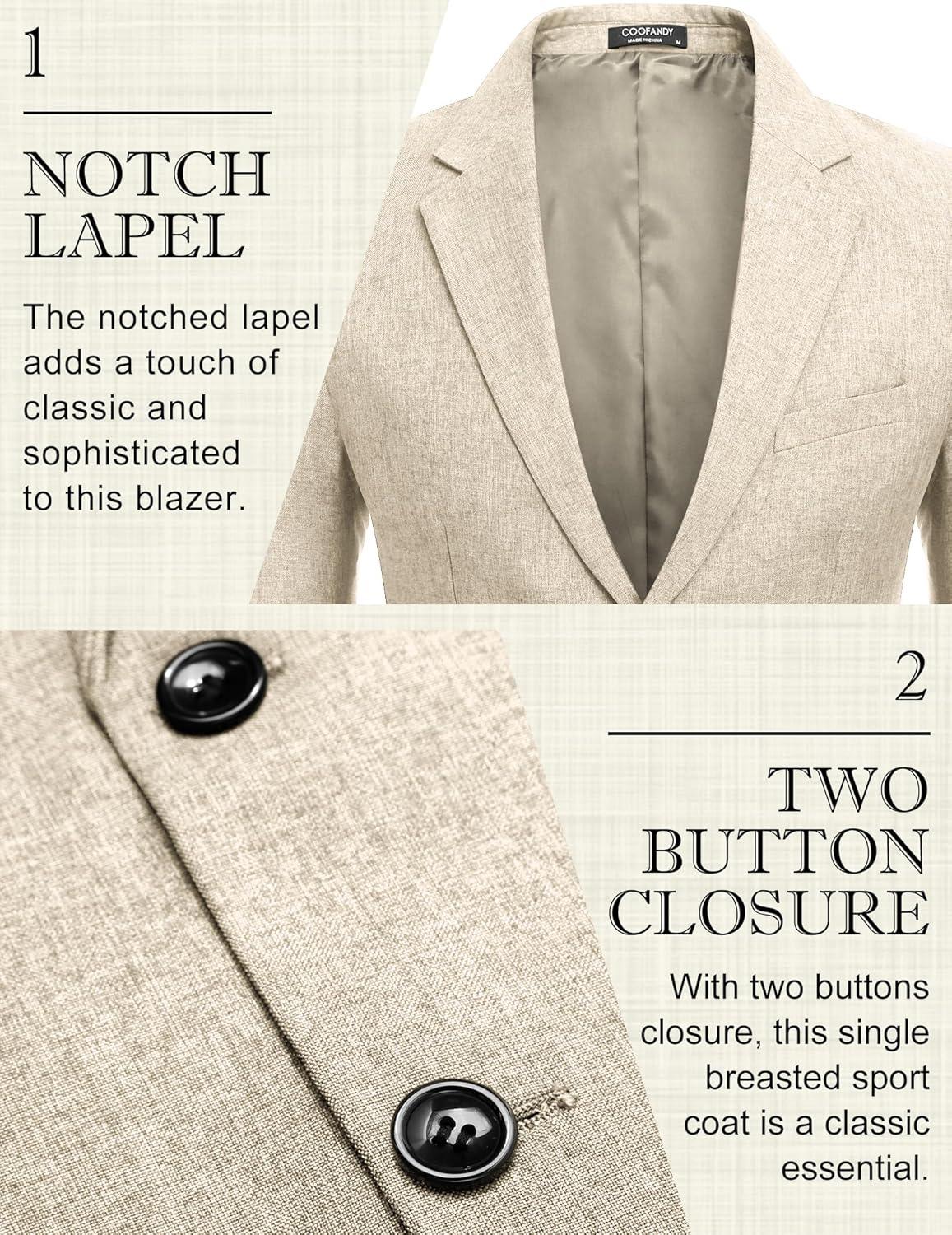COOFANDY Men's Blazer Casual Slim Fit Sport Coats Two Button Lightweight Suit Jacket(Light Khaki)