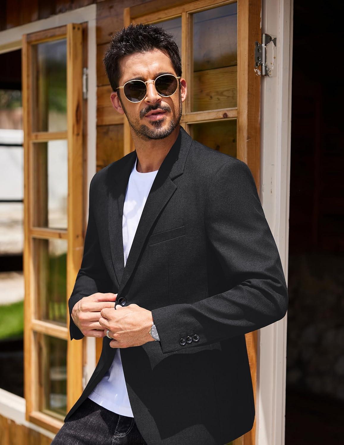 COOFANDY Men’s Blazer Casual Slim Fit Sport Coats Two Button Lightweight Suit Jacket(Solid Color Blazer – Black)