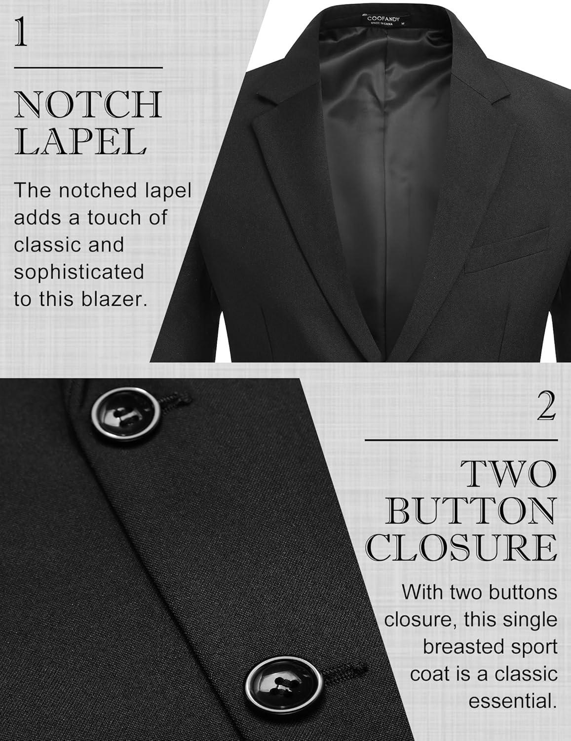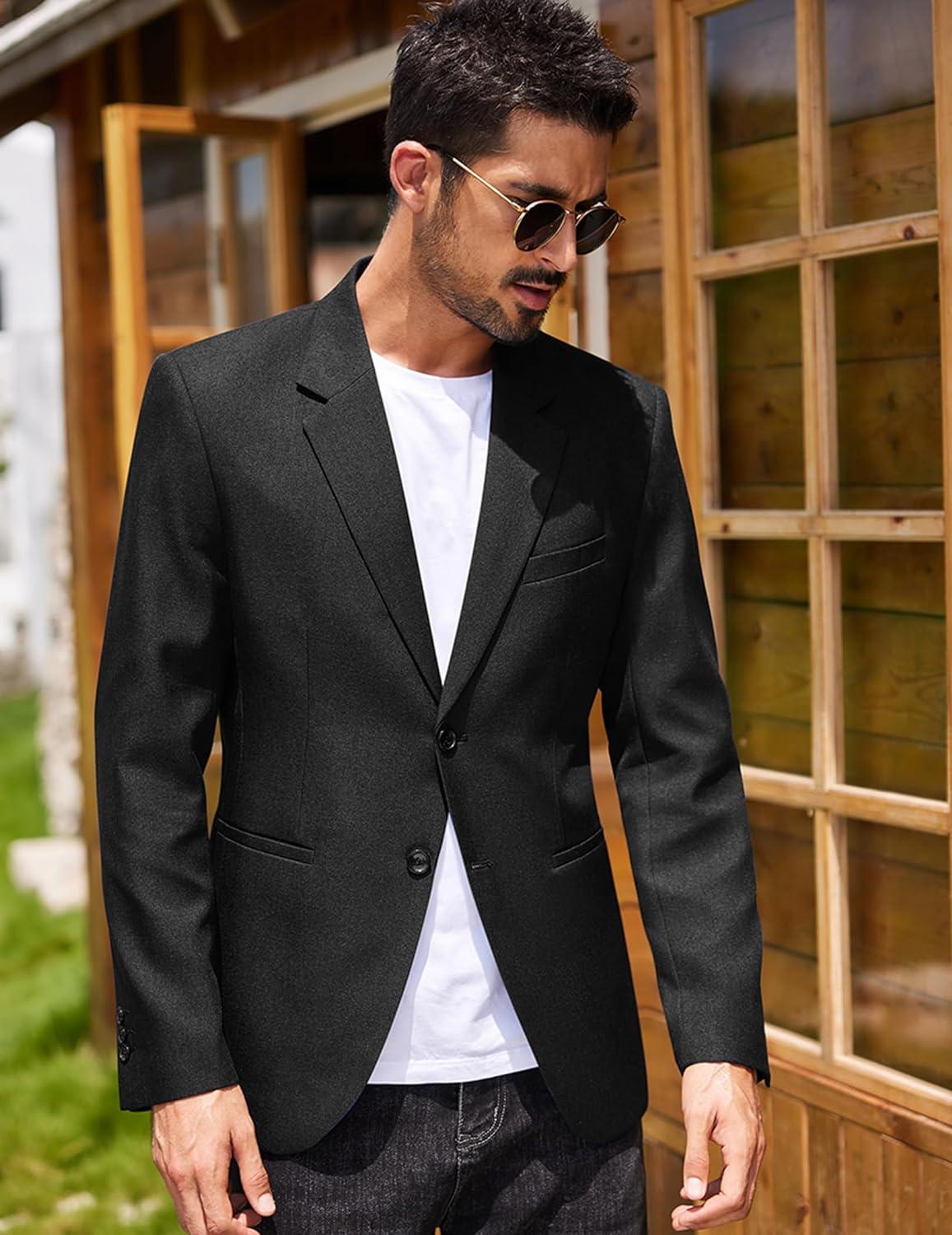 COOFANDY Men's Blazer Casual Slim Fit Sport Coats Two Button Lightweight Suit Jacket(Solid Color Blazer - Black)